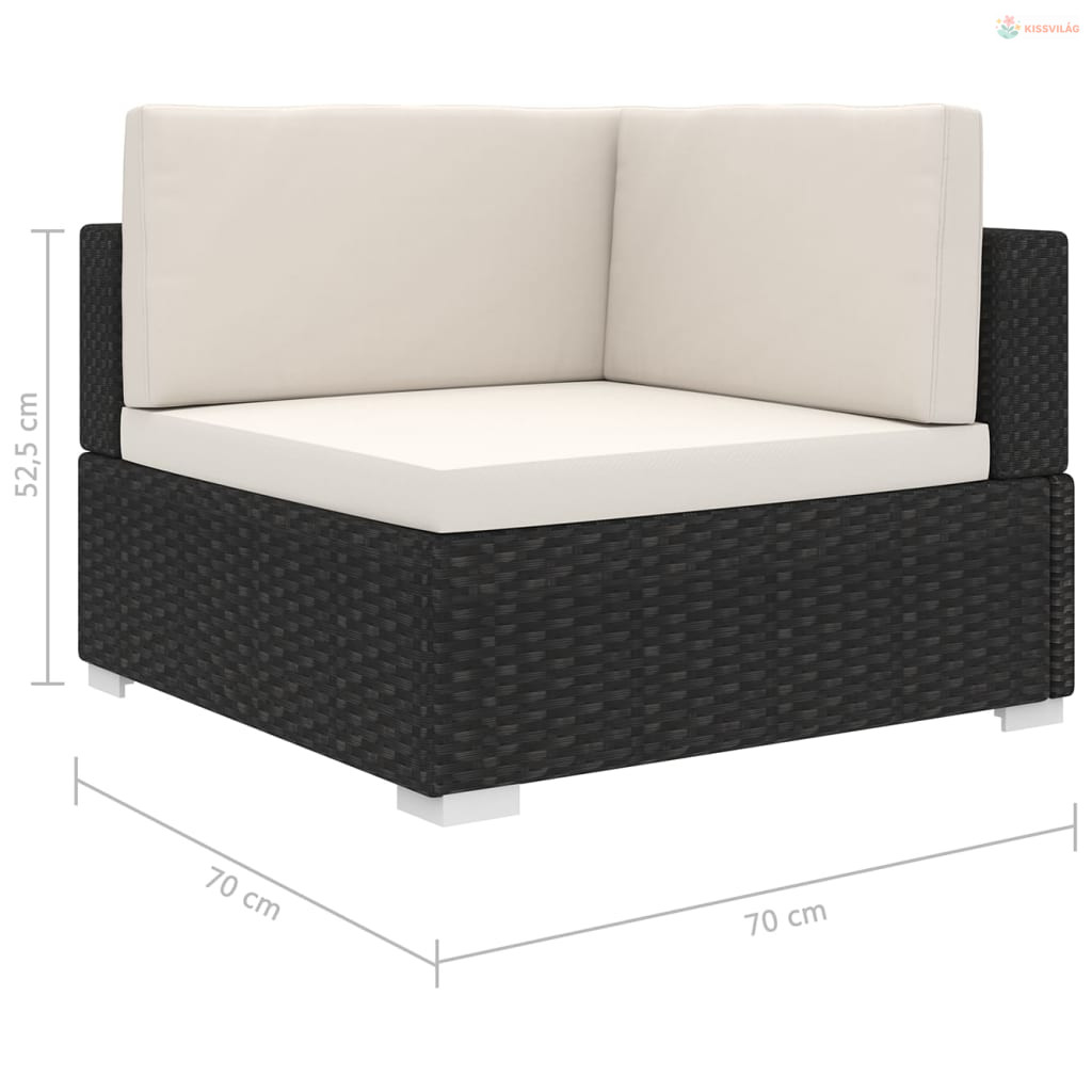 1 db fekete polyrattan moduláris sarokfotel párnákkal
