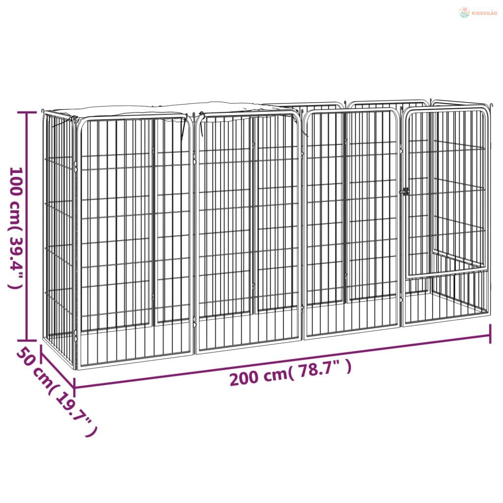 10-paneles fekete porszórt acél kutyakennel 50 x 100 cm