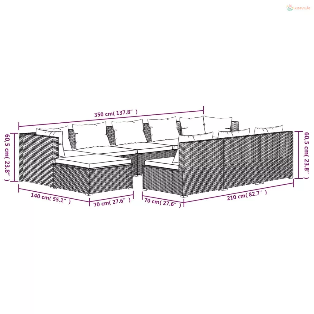 10 részes barna polyrattan kerti bútorszett párnákkal