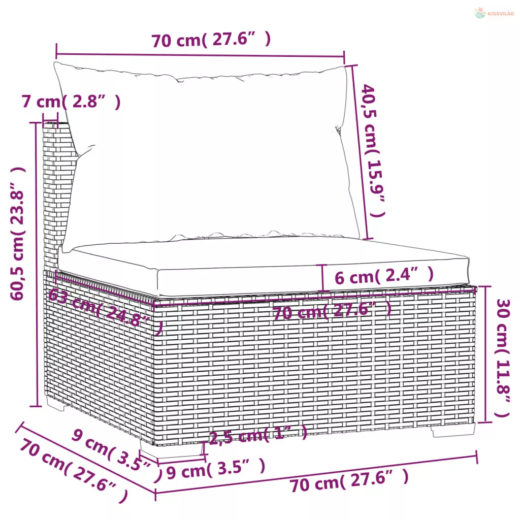 • Középső kanapé mérete (egyenként): 70 x 70 x 60,5 cm (Ho x Szé x Ma)