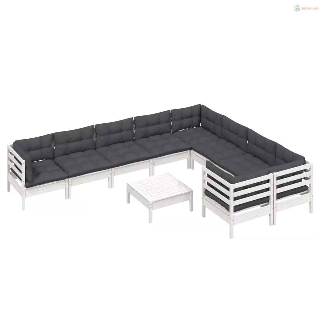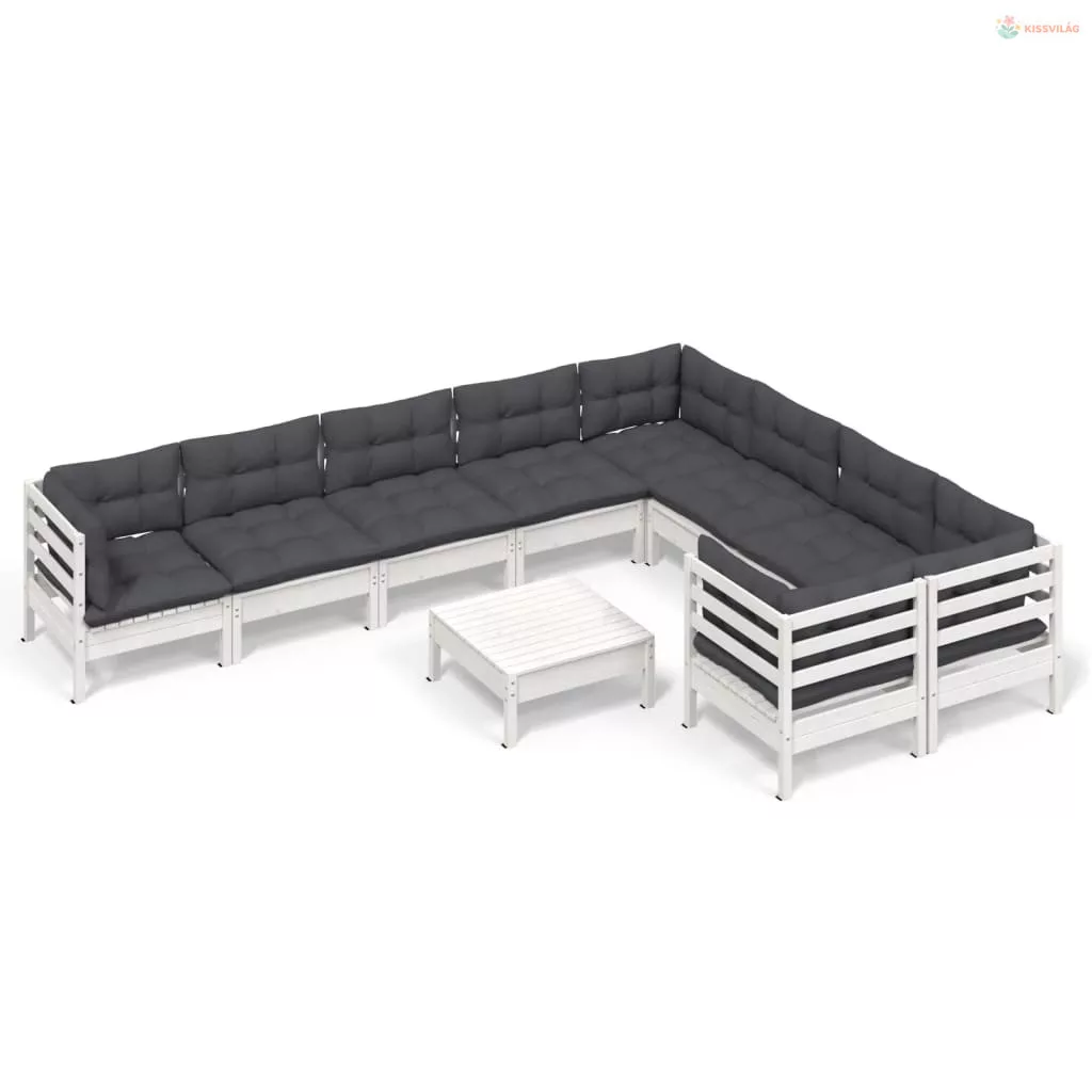 10 részes fehér fenyőfa kerti ülőgarnitúra párnákkal
