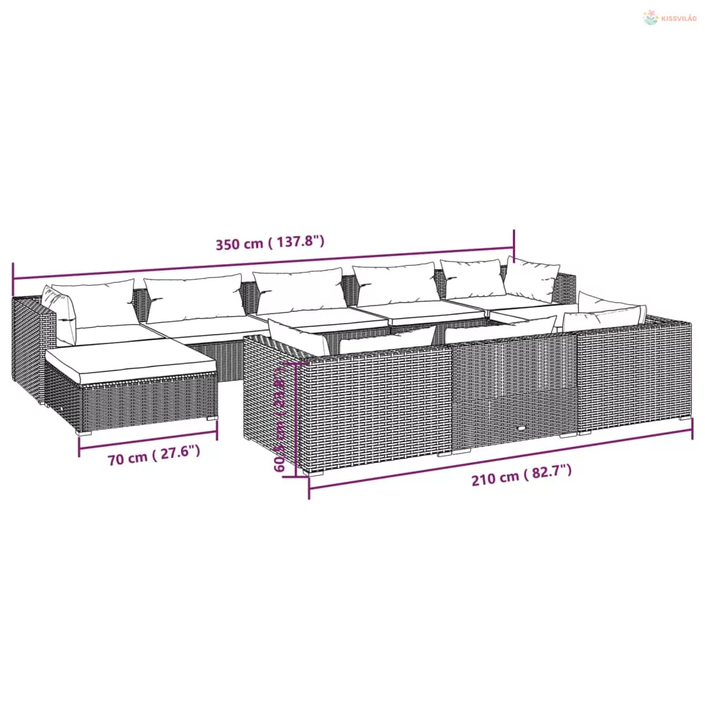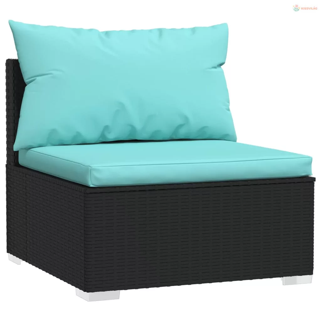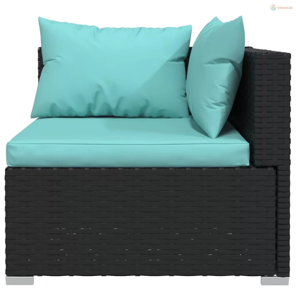 10 részes fekete polyrattan kerti ülőgarnitúra párnákkal