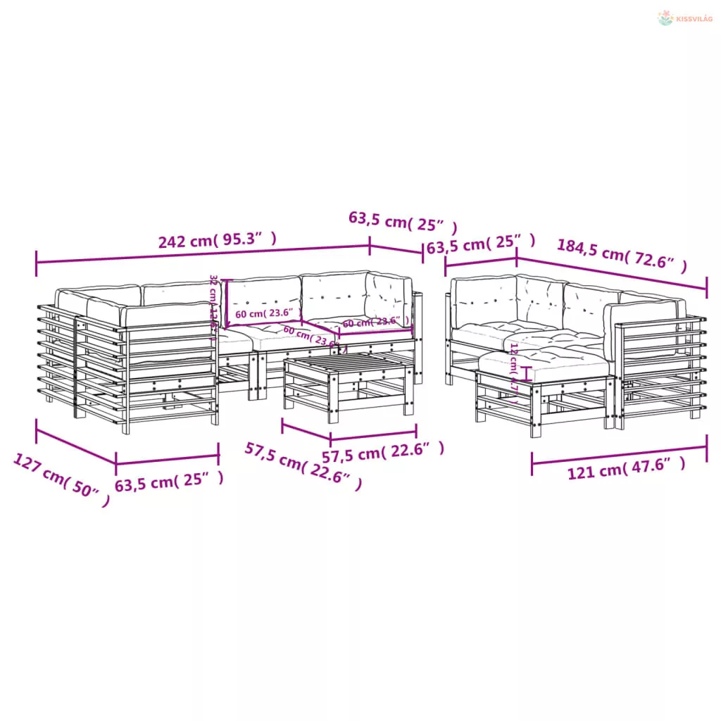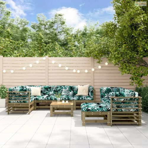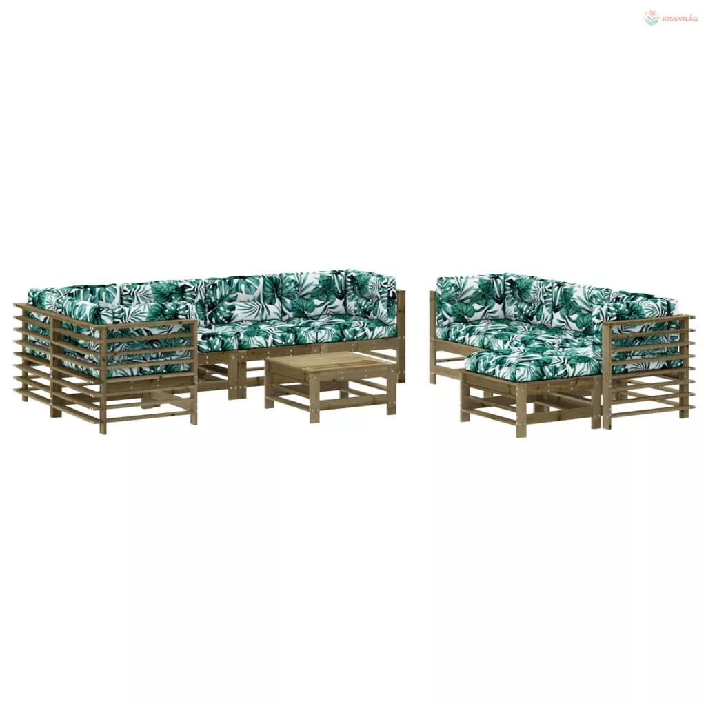 10 részes impregnált fenyőfa kerti ülőgarnitúra párnával