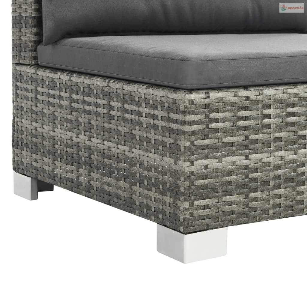10-részes szürke polyrattan kerti bútorszett párnákkal