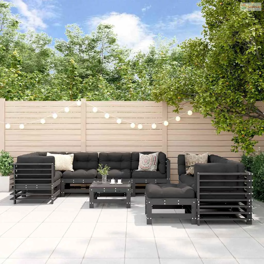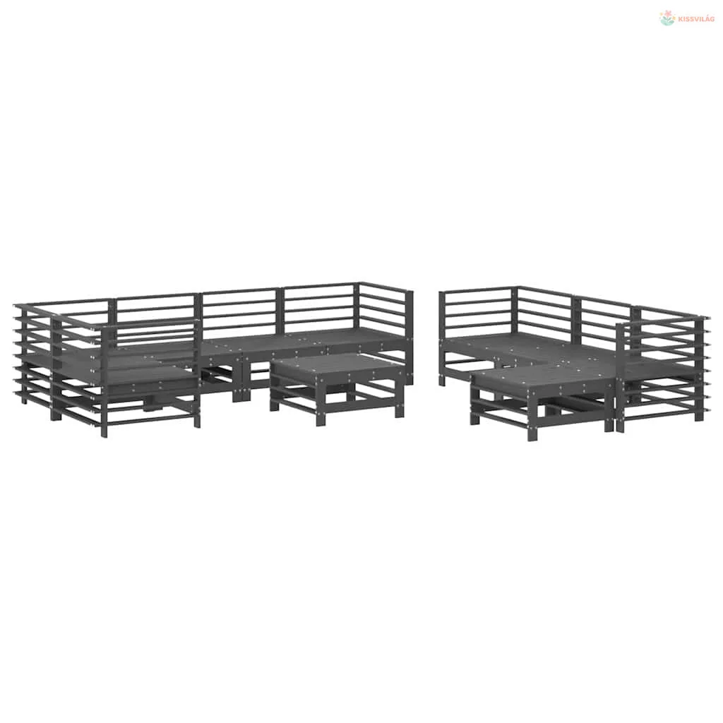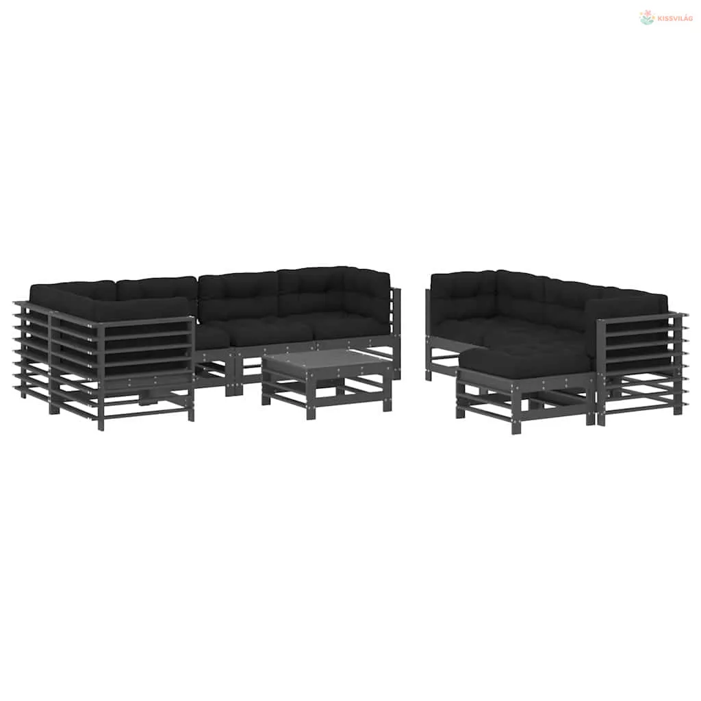 10 részes szürke tömör fa kerti ülőgarnitúra párnával