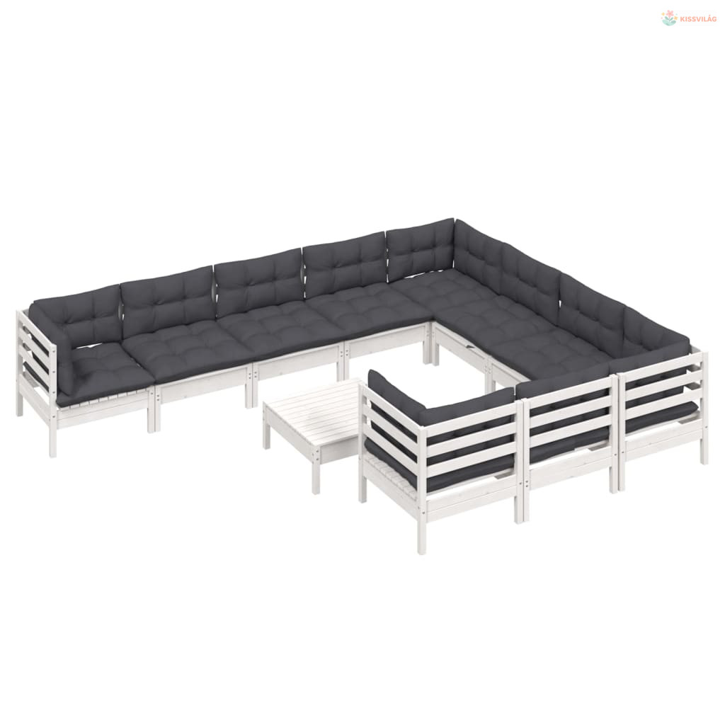 11 részes fehér fenyőfa kerti ülőgarnitúra párnákkal