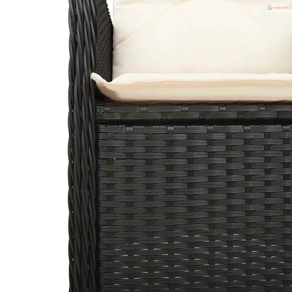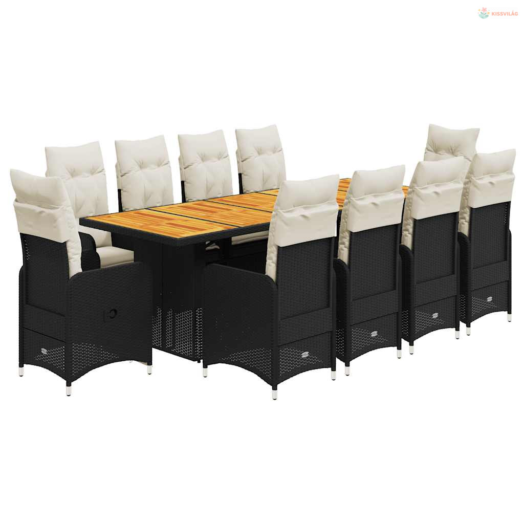 11 részes fekete polyrattan kerti bisztrógarnitúra párnákkal