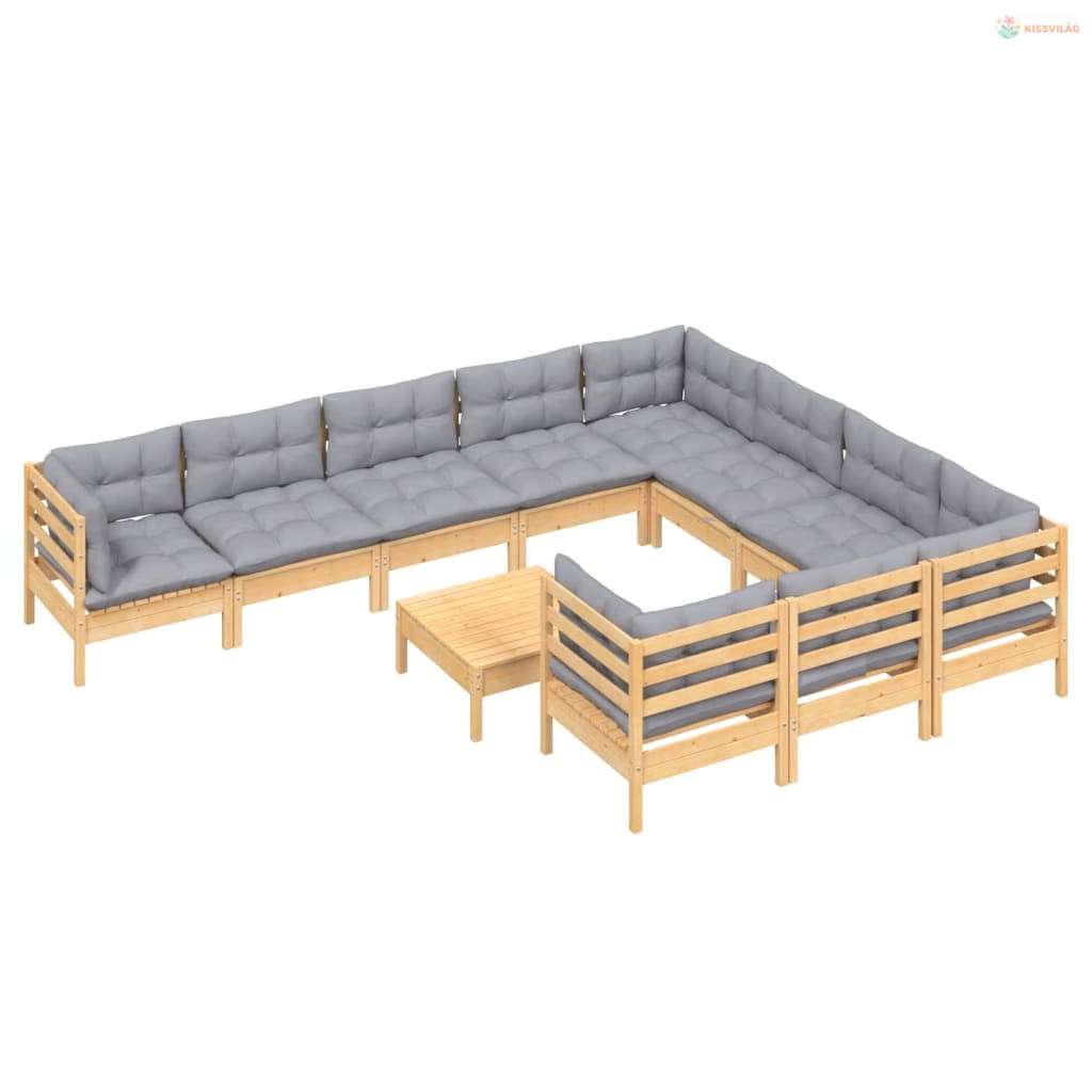 11 részes fenyőfa kerti ülőgarnitúra szürke párnákkal