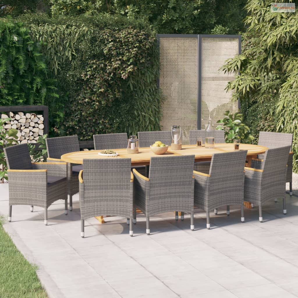 11 részes szürke kerti étkezőgarnitúra párnákkal