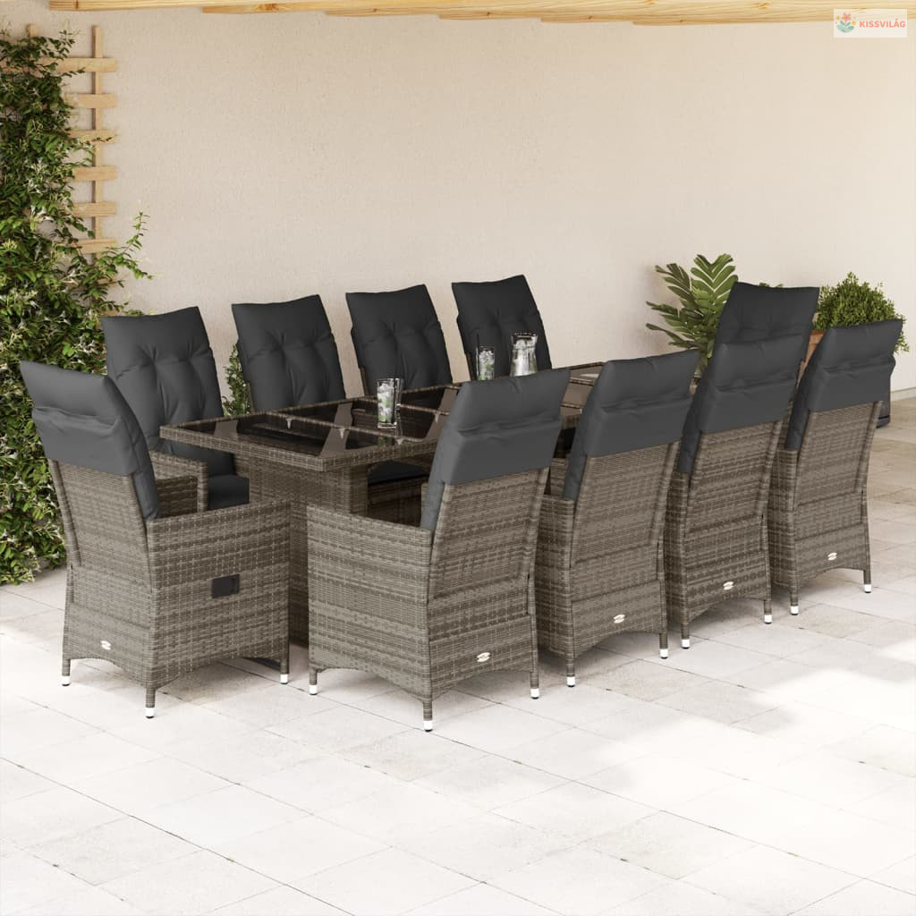 11 részes szürke polyrattan kerti bisztrógarnitúra párnákkal