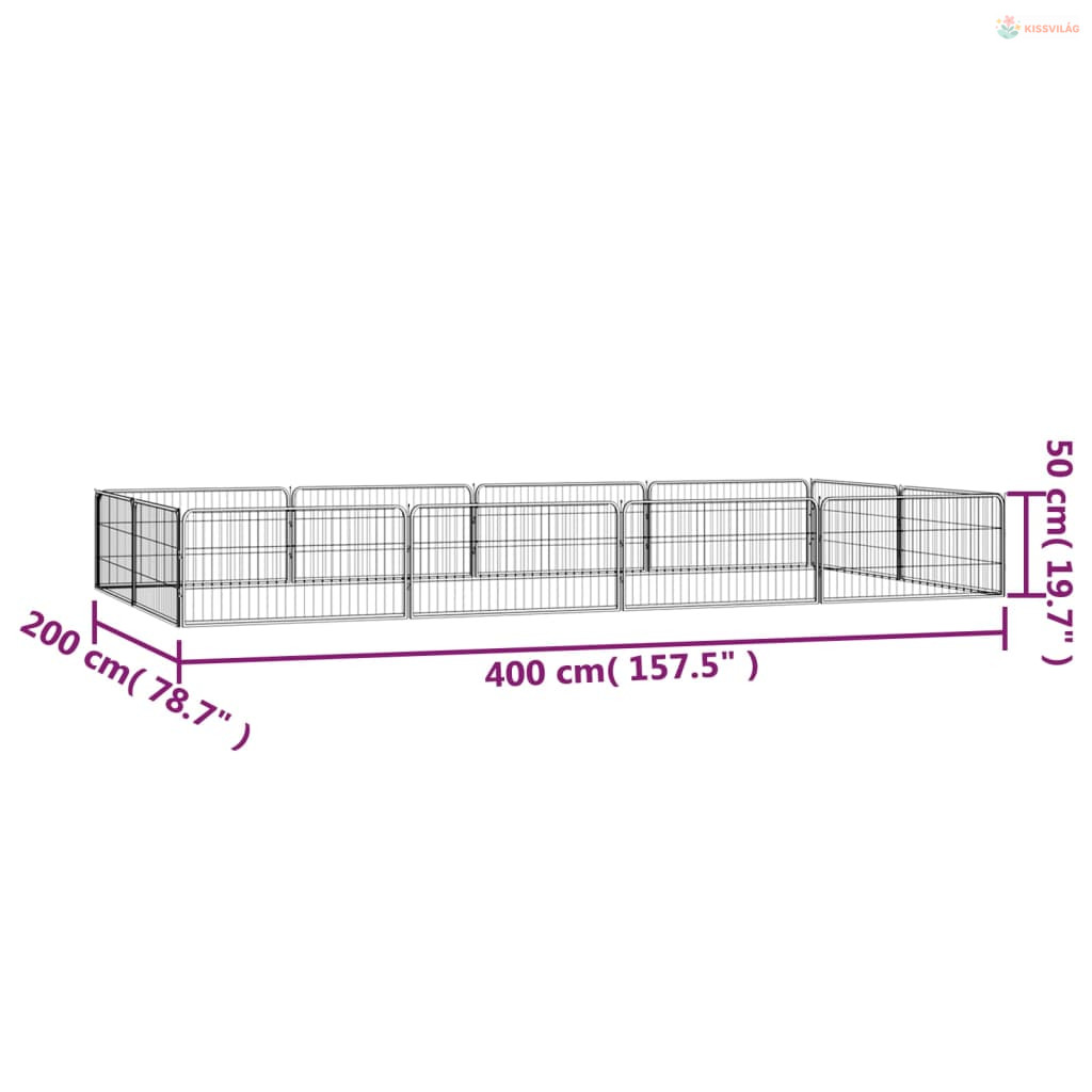 12-paneles fekete porszórt acél kutyakennel 100 x 50 cm