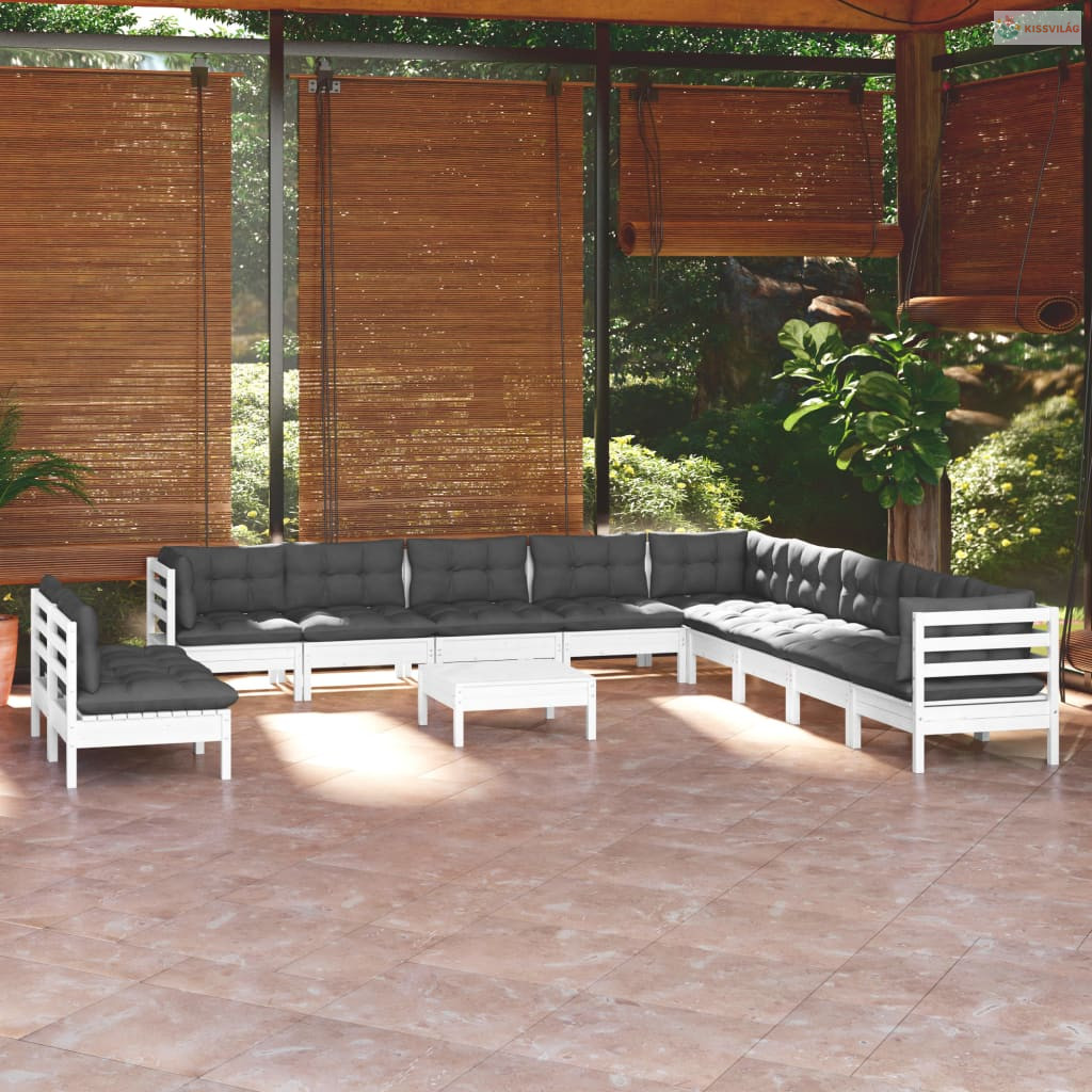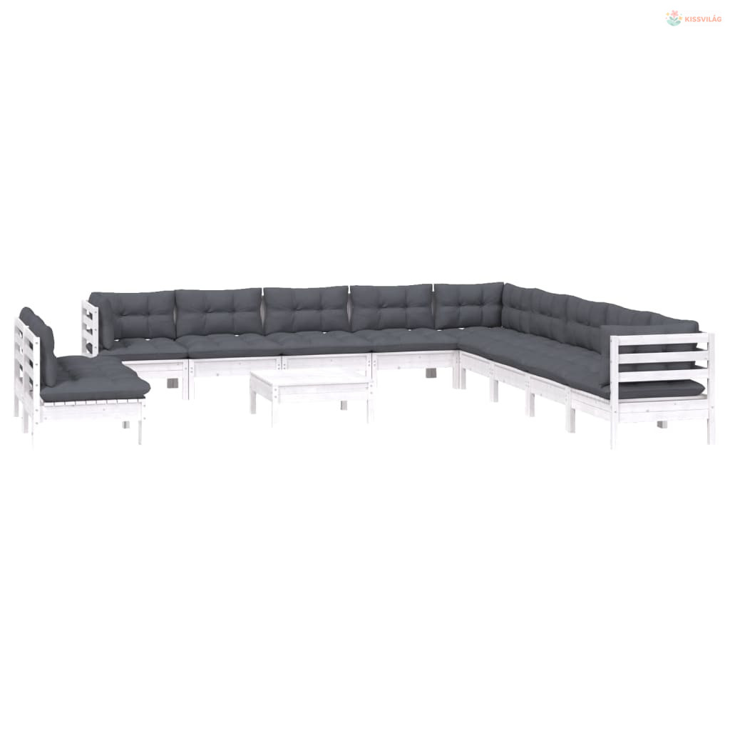 12 részes fehér tömör fenyőfa kerti ülőgarnitúra párnákkal