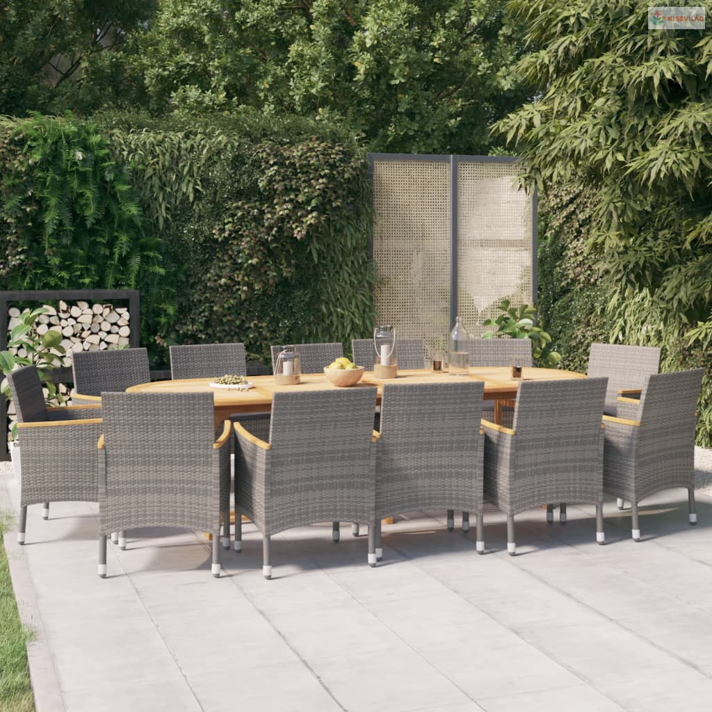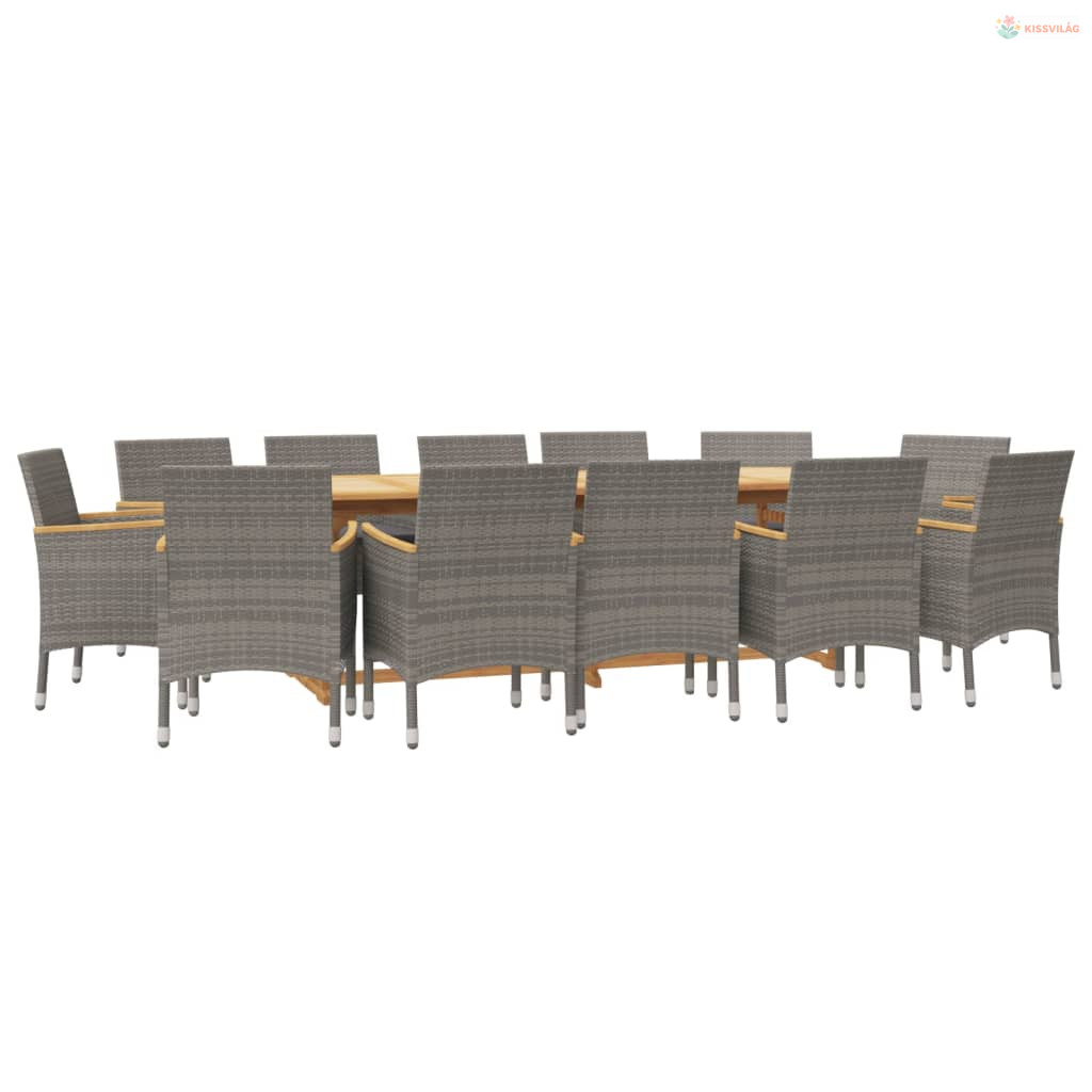 13 részes szürke kerti étkezőgarnitúra párnákkal