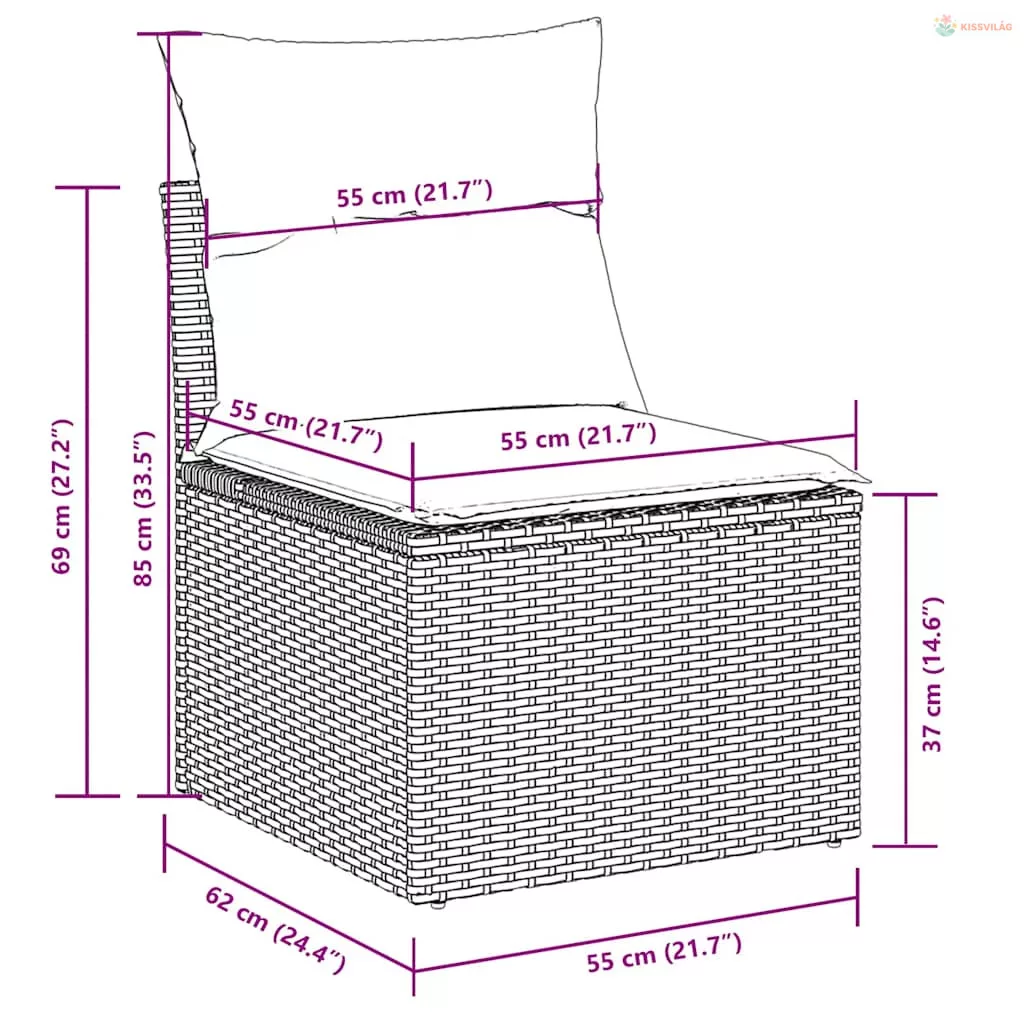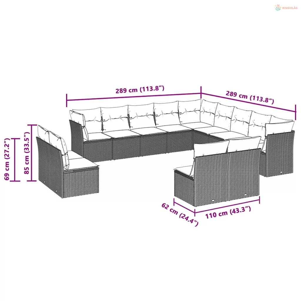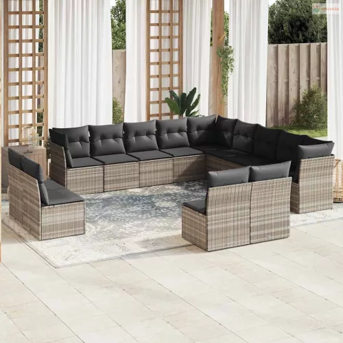 13 részes világosszürke polyrattan kerti ülőgarnitúra párnákkal