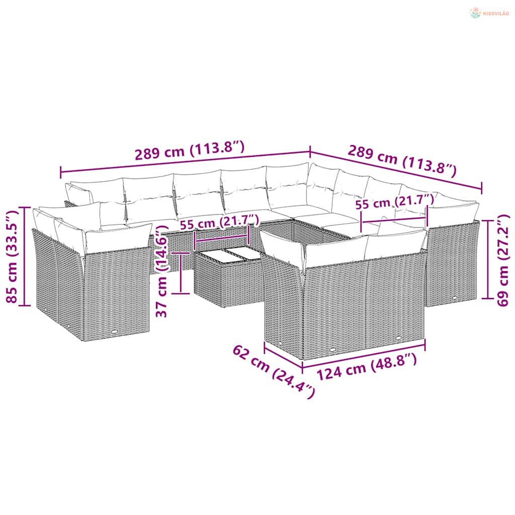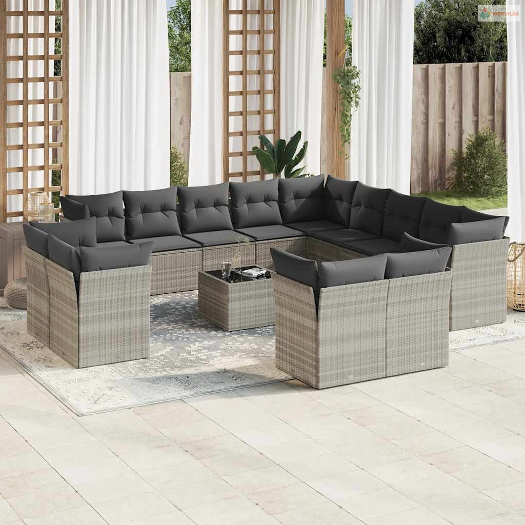14 részes világosszürke polyrattan kerti ülőgarnitúra párnával
