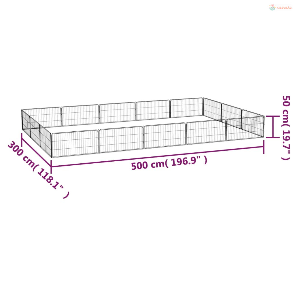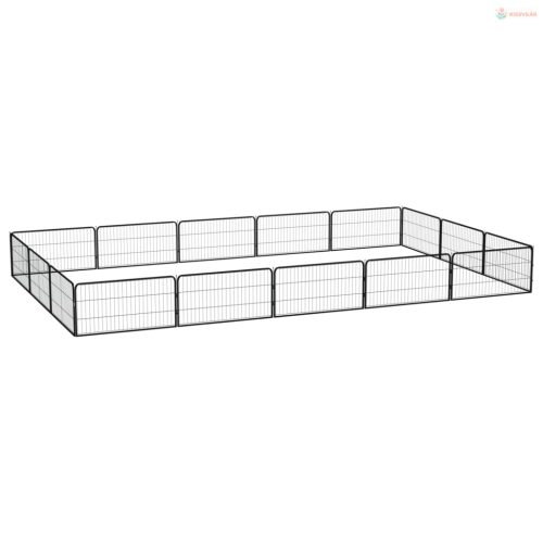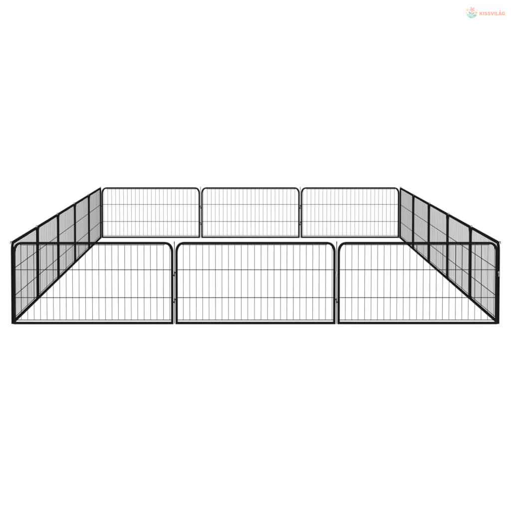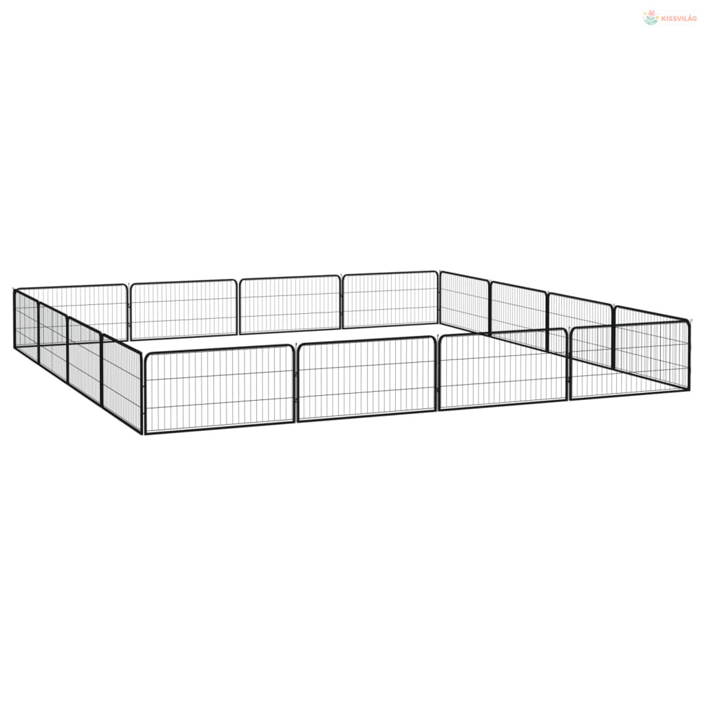 16-paneles fekete porszórt acél kutyakennel 100 x 50 cm