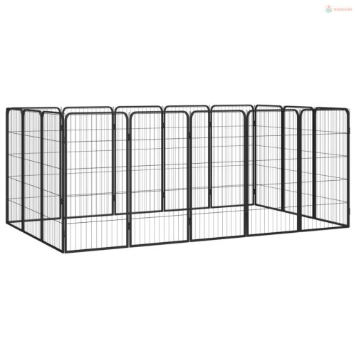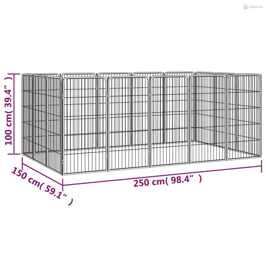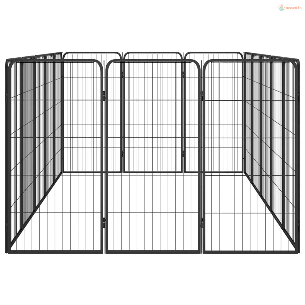 16-paneles fekete porszórt acél kutyakennel 50 x 100 cm