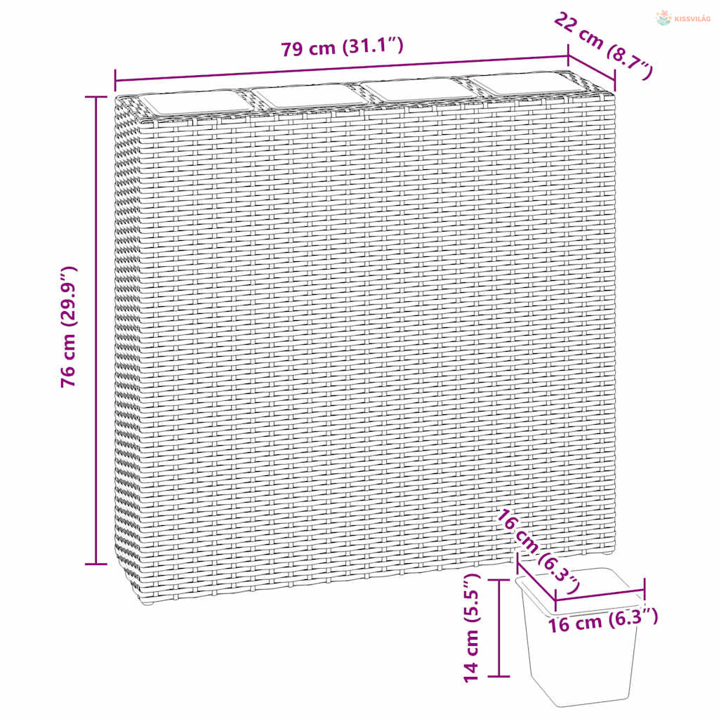 • Virágtartó mérete: 79 x 22 x 76 cm (Ho x Szé x Ma)