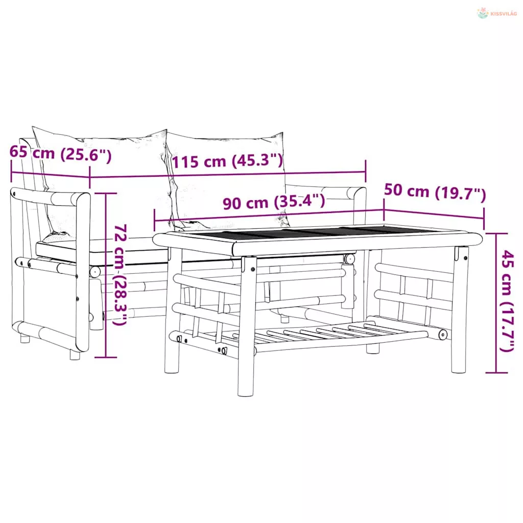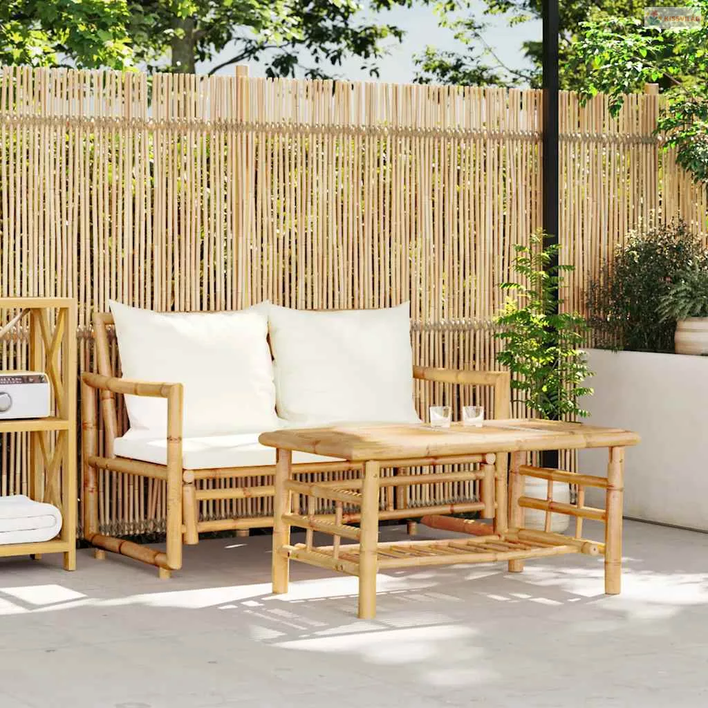 2 darabos bambusz kerti kanapégarnitúra párnákkal