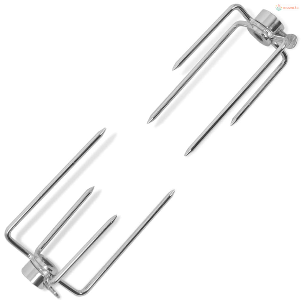 Krómozott acélból készültek. A 4 karom biztosítja hogy a felszúrt hús a helyén marad, mikor ezt a tűz fölött forgatják. A villák a nyársalóra illeszthetők és a csavarok segítségével rá szorítható.