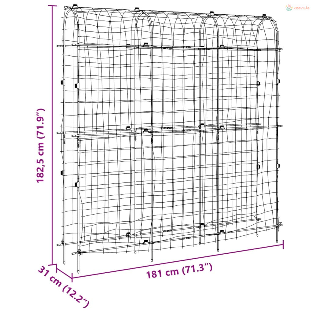 • Széleskörű alkalmazás: Ez a megvastagított fémcsövekkel ellátott kerti rács különféle kúszónövényekhez alkalmas, beleértve a szőlőt, borsót, uborkát, padlizsánt, rózsát stb. Segíthet létrehozni egy szép és termékeny kertet.