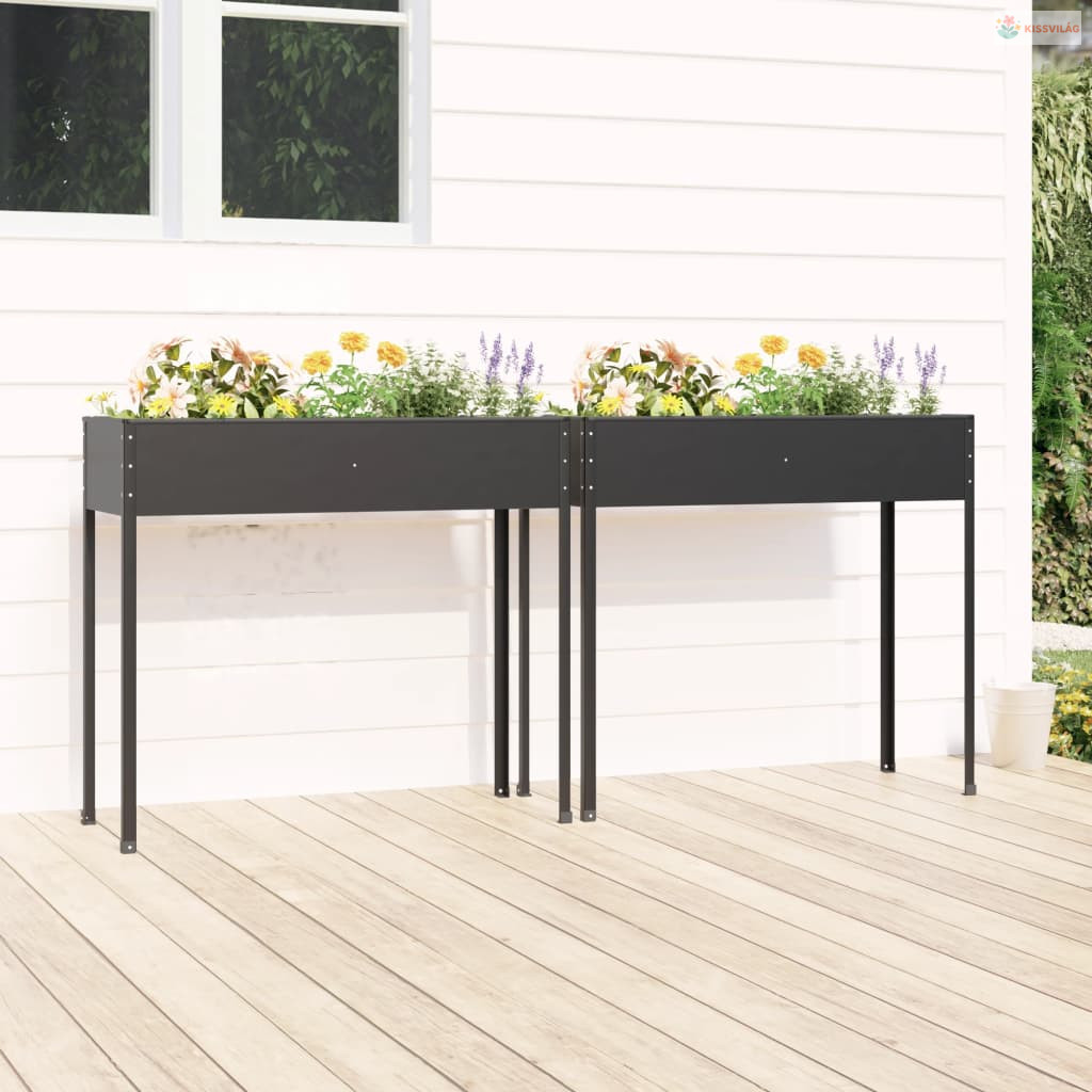 2 db antracitszürke horganyzott acél kerti ültetőláda