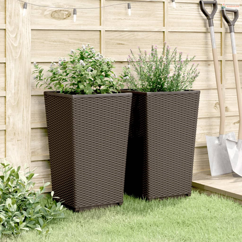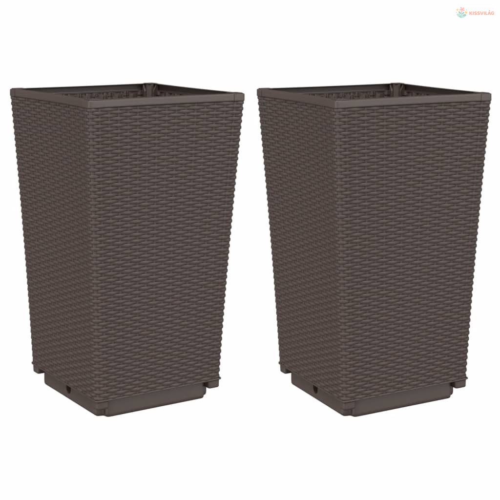 2 db barna polipropilén kerti ültetőláda 32,5 x 32,5 x 57 cm