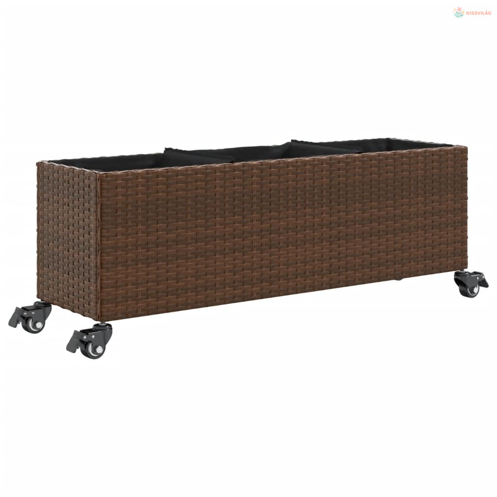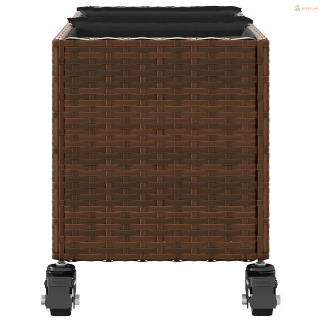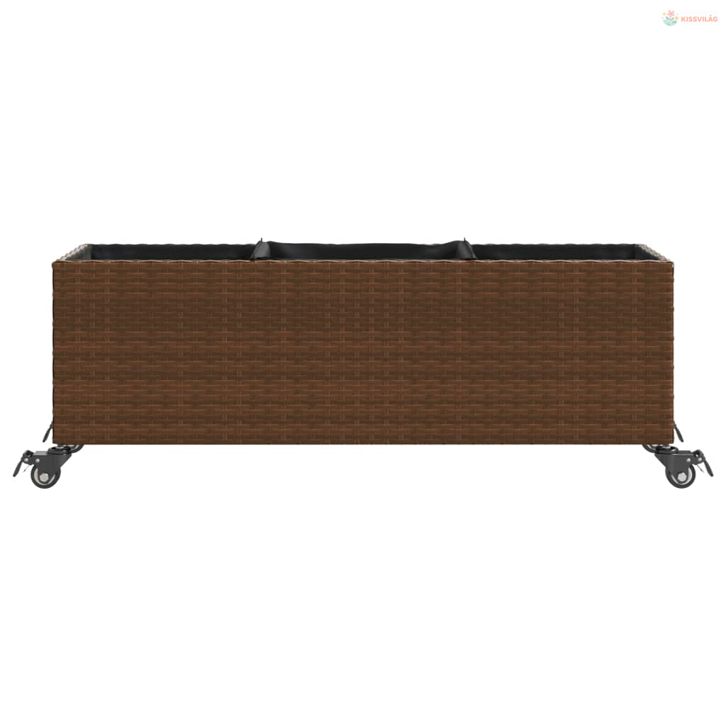 2 db barna polyrattan növénytartó kerékkel 107x32x38 cm