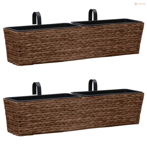 A rendkívül tartós vízijácintból készült virágtartó szorosan fonott kialakítása, és két fém tartója, sima felületet és nagy stabilitást biztosít. Ezenkívül a 4 belső műanyag kaspóval felszerelt virágkaspó szett hosszú élettartammal rendelkezik. Mindenféle növény és virág ültethető ezekbe a kaspókba.