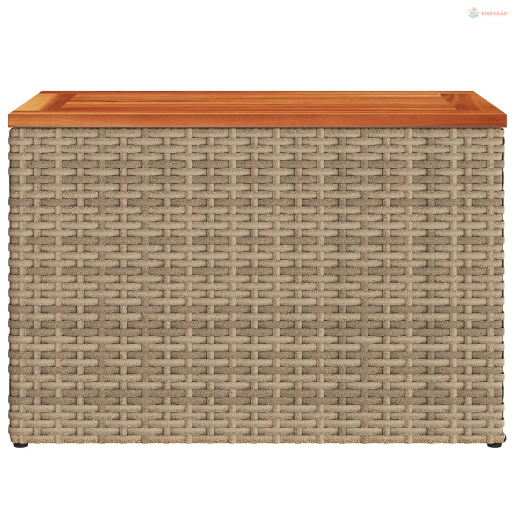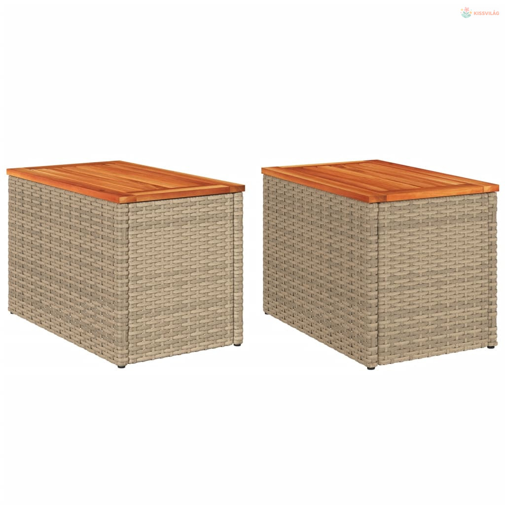 2 db bézs polyrattan és tömör fa kerti kisasztal 55x34x37 cm
