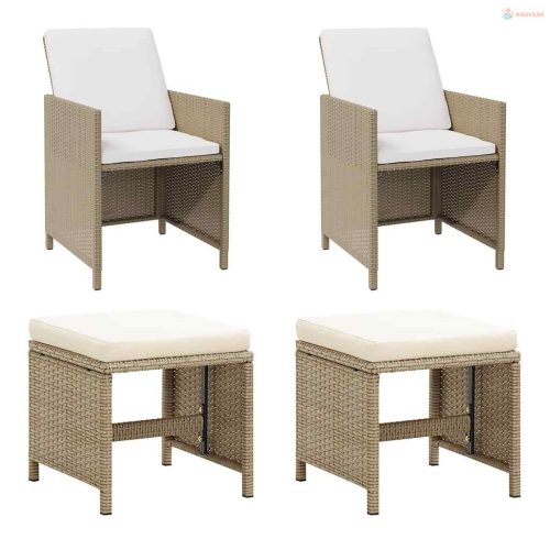 • Prémium minőségű anyag: Ezek a polietilén rattanból készült kerti székek és lábtartók időjárás- és vízállóak.