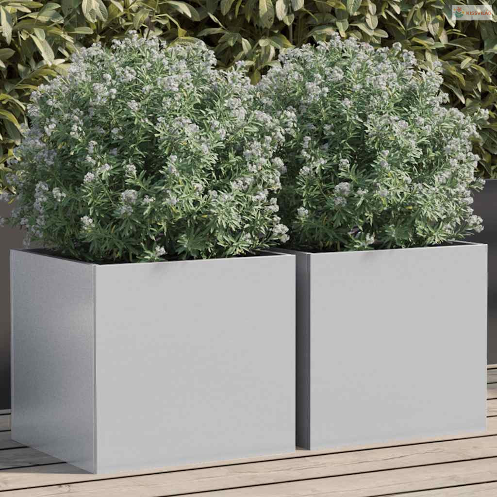 2 db ezüstszínű horganyzott acél növénytartó 42 x 40 x 39 cm