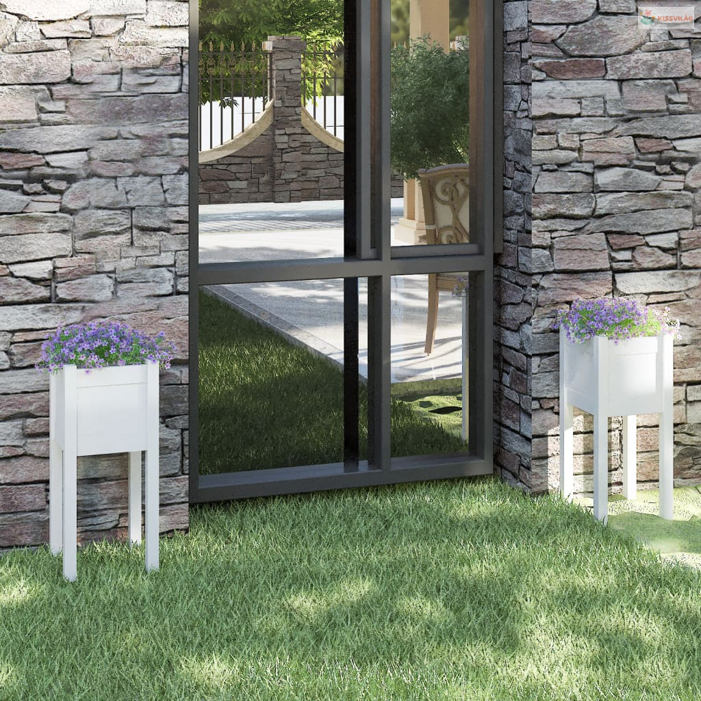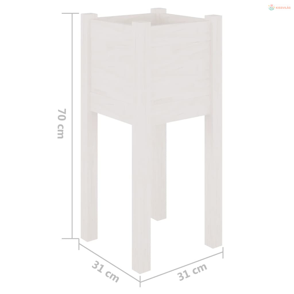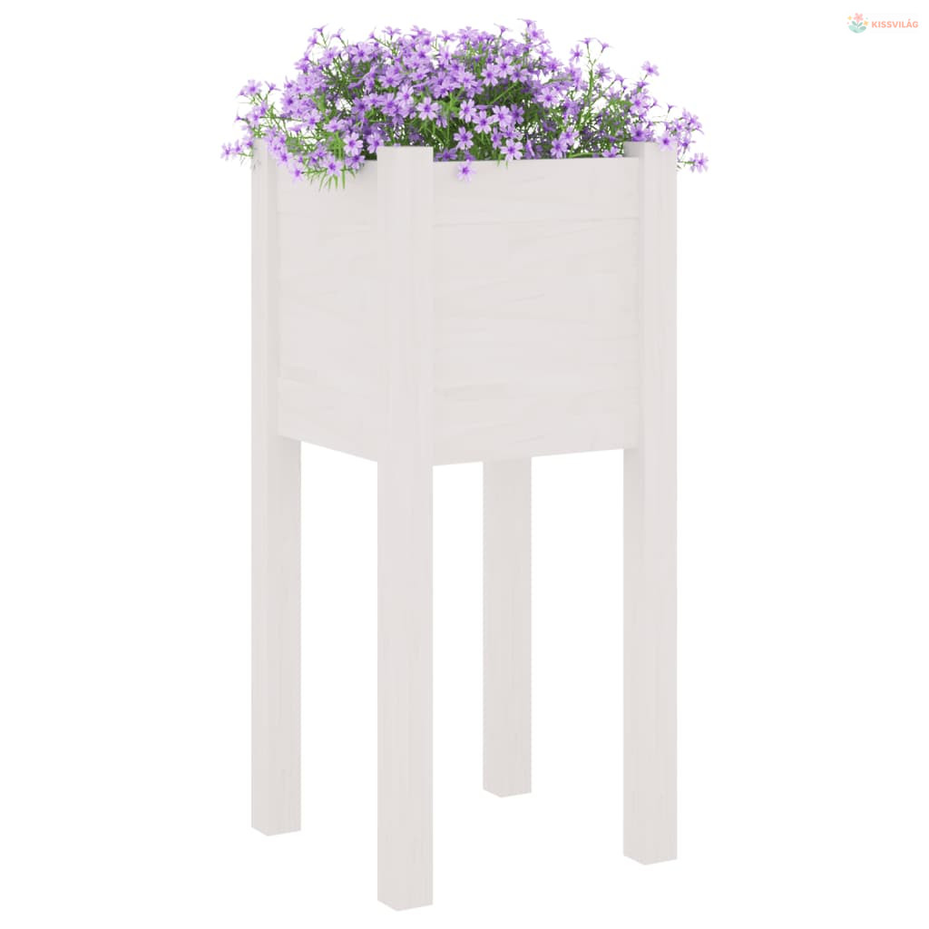 2 db fehér tömör fenyőfa kerti virágtartó 31 x 31 x 70 cm