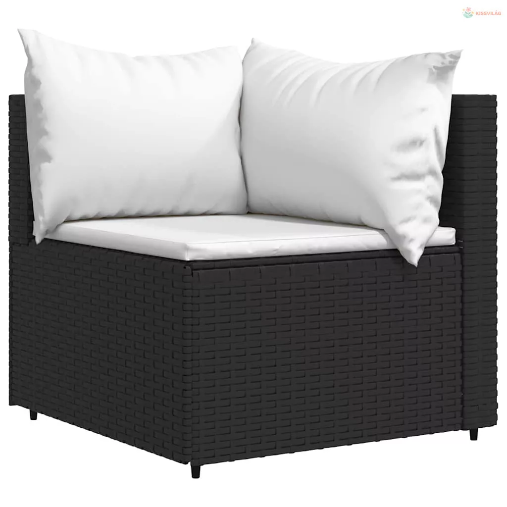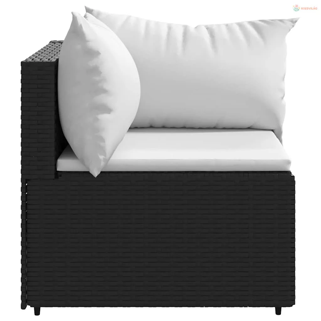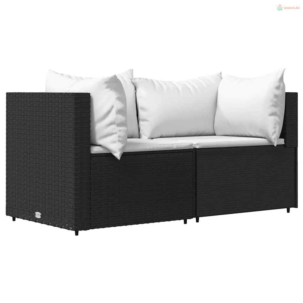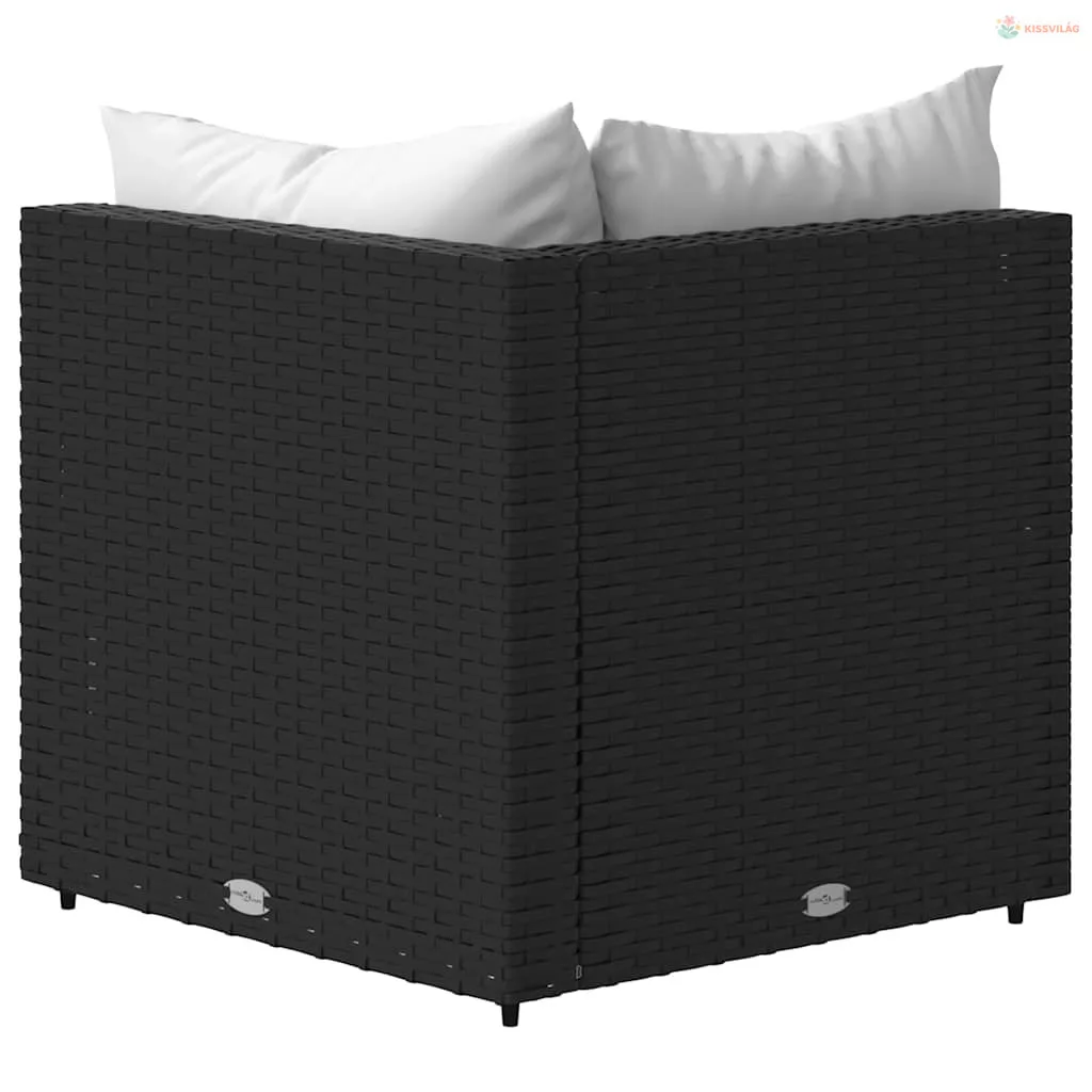 2 db fekete polyrattan kerti sarokkanapé párnákkal