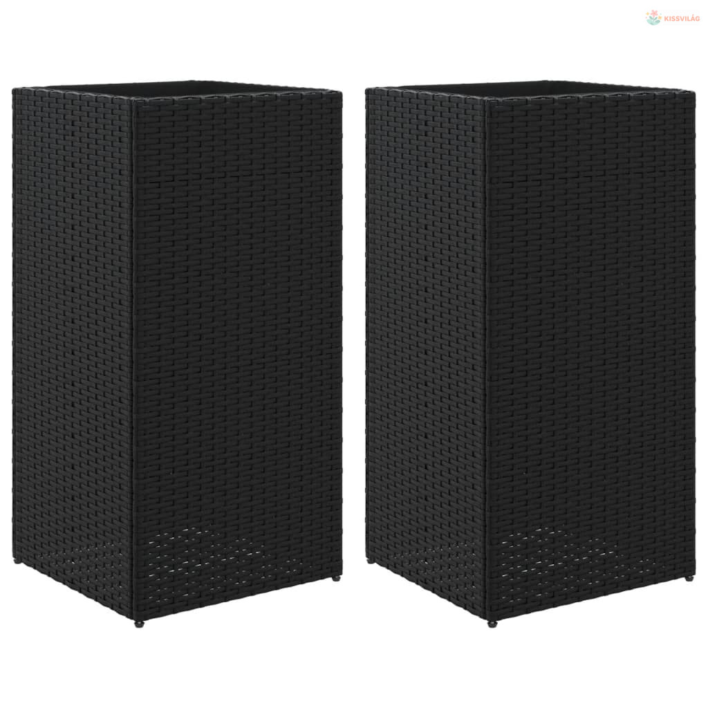 2 db fekete polyrattan kerti ültetőláda 40x40x80 cm