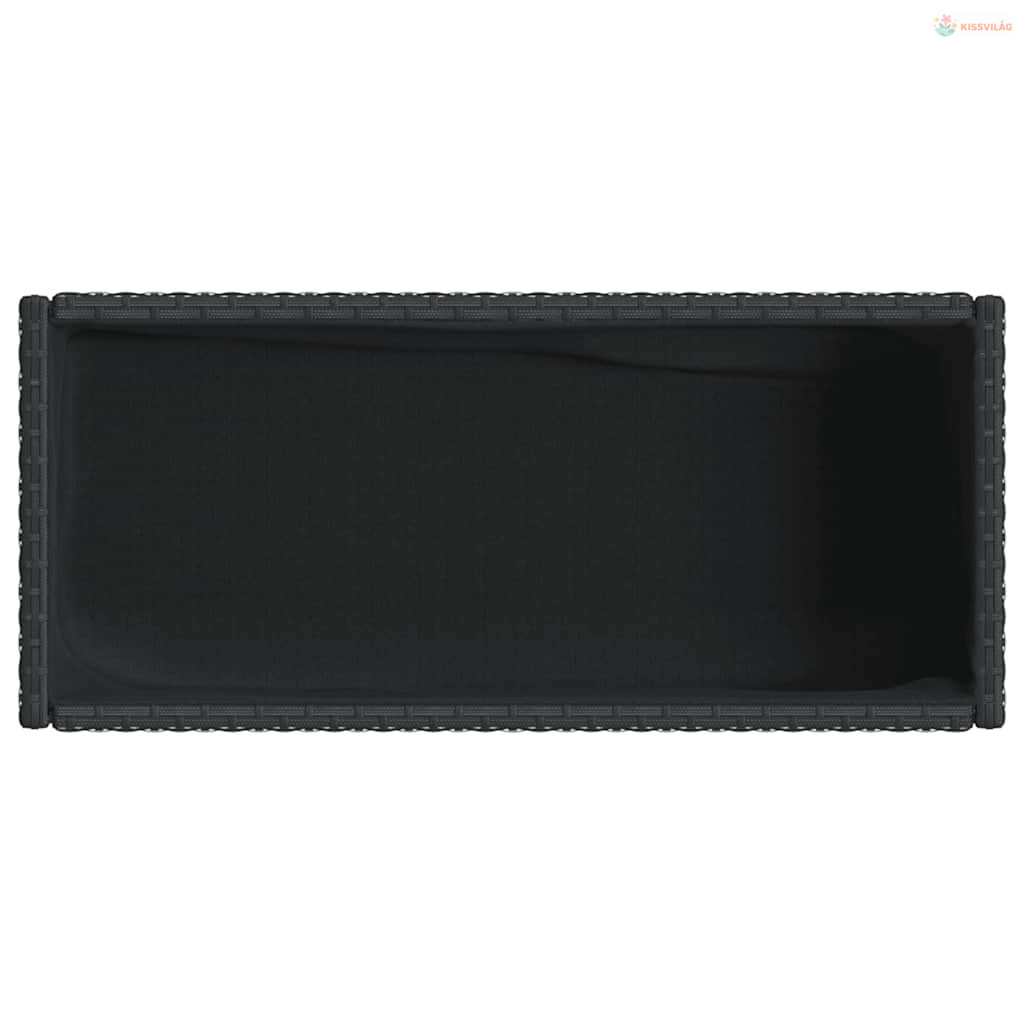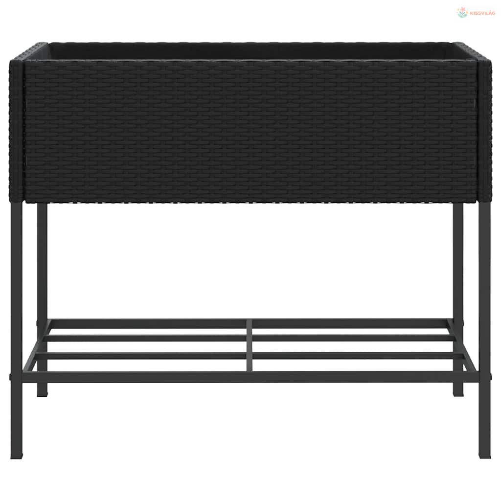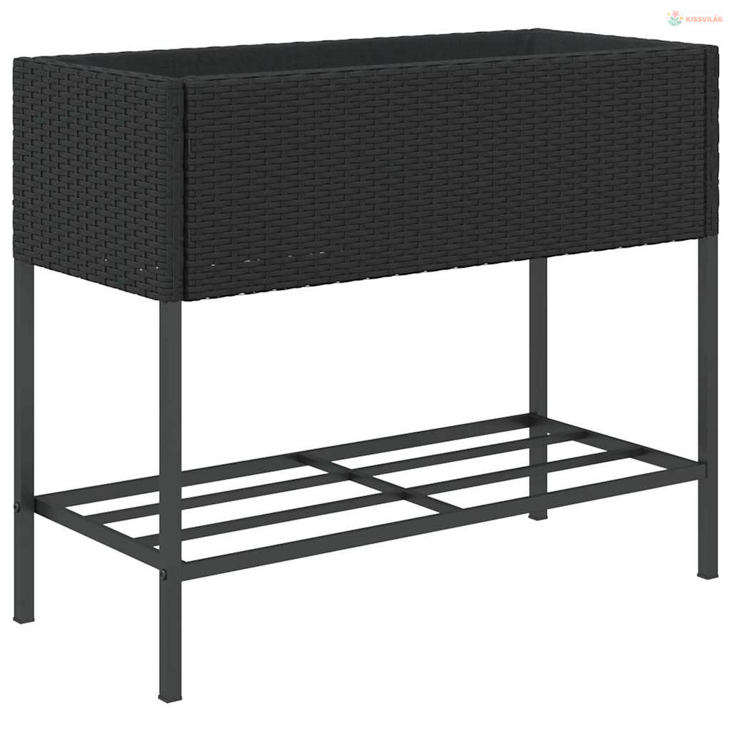 2 db fekete polyrattan kerti ültetőláda polccal 90 x 40 x 75 cm