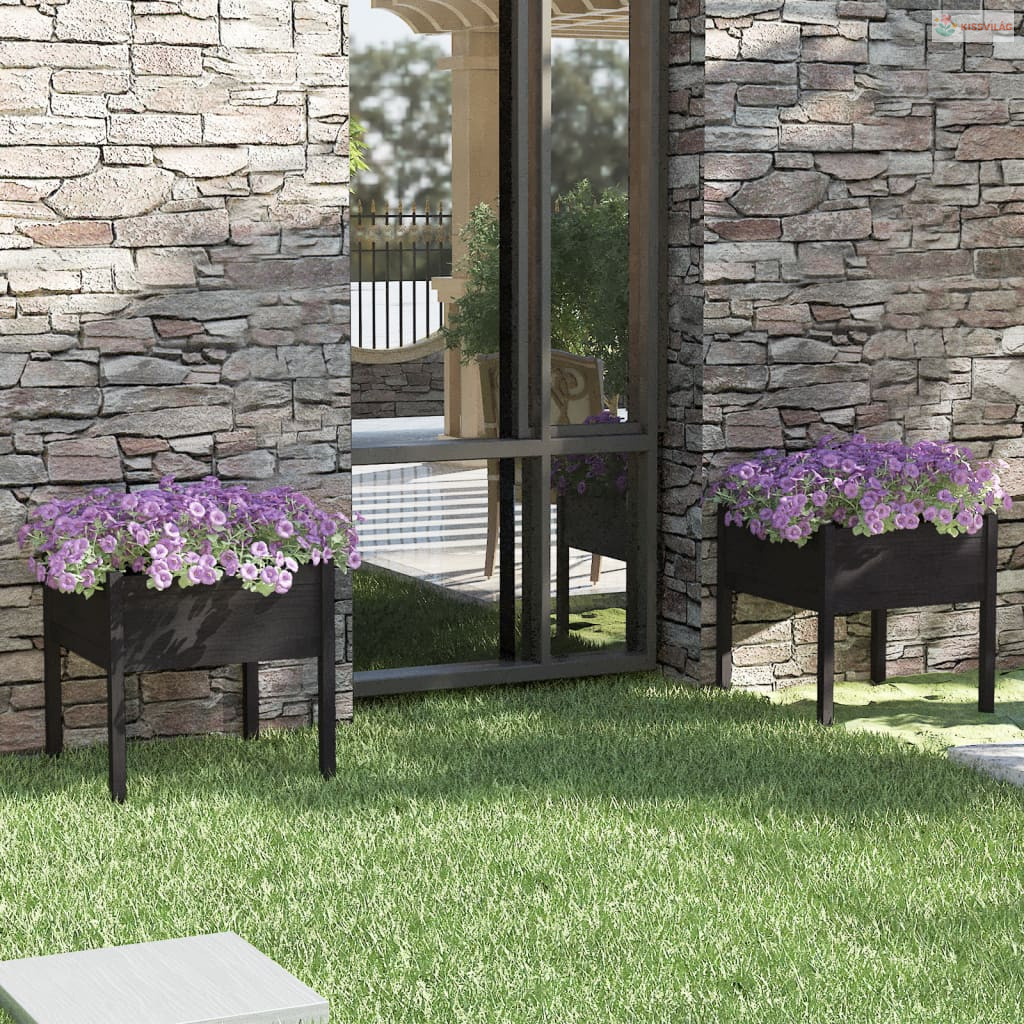 2 db fekete tömör fenyőfa kerti virágtartó 70 x 70 x 70 cm
