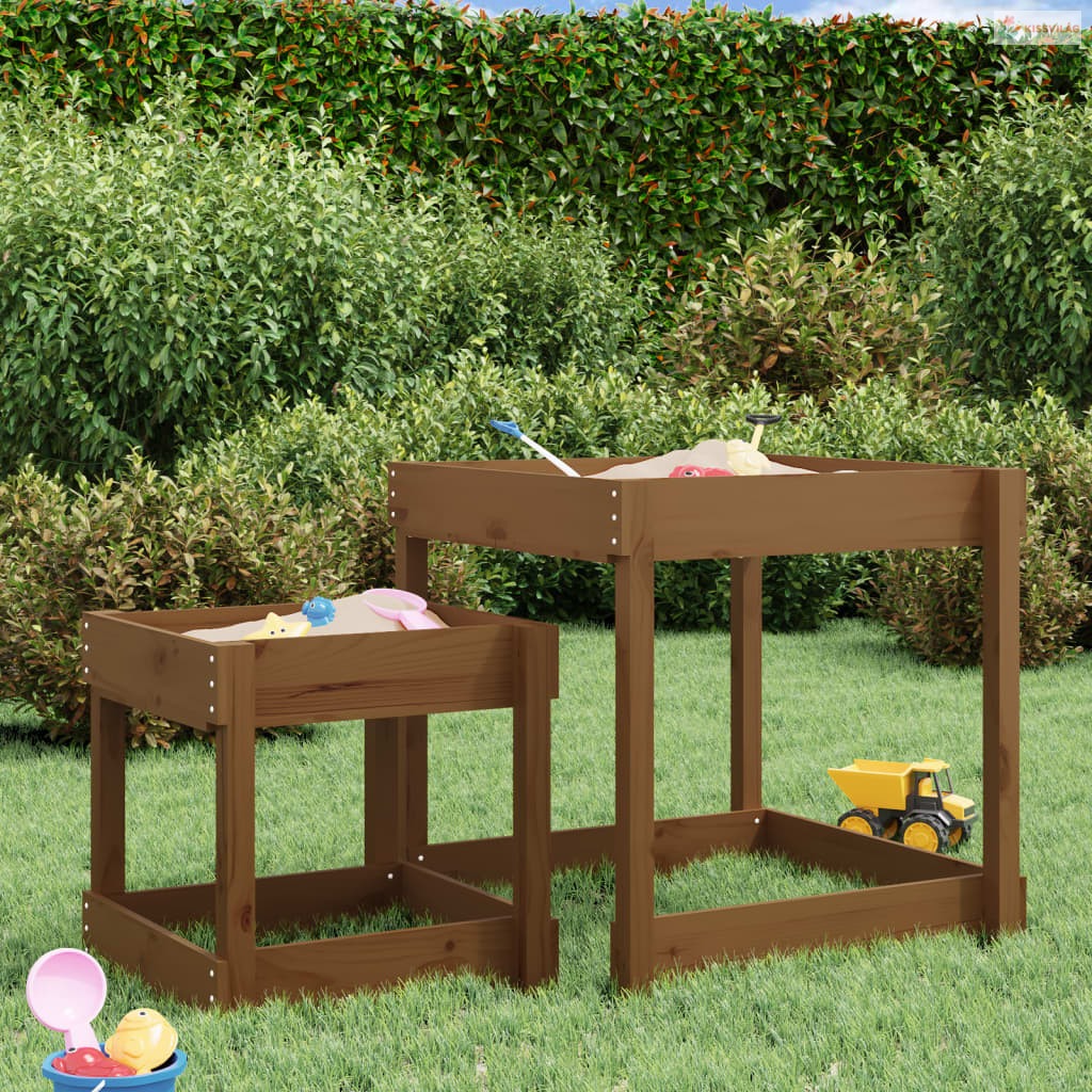 2 db mézbarna tömör fenyőfa homokozó asztal