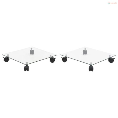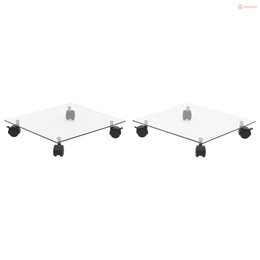 2 db négyszögletű görgős virágalátét edzett üvegből, 35x35 cm
