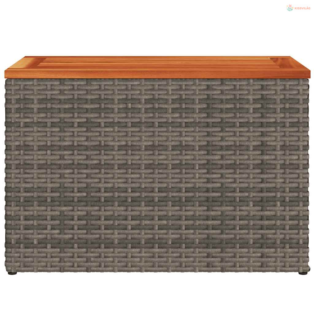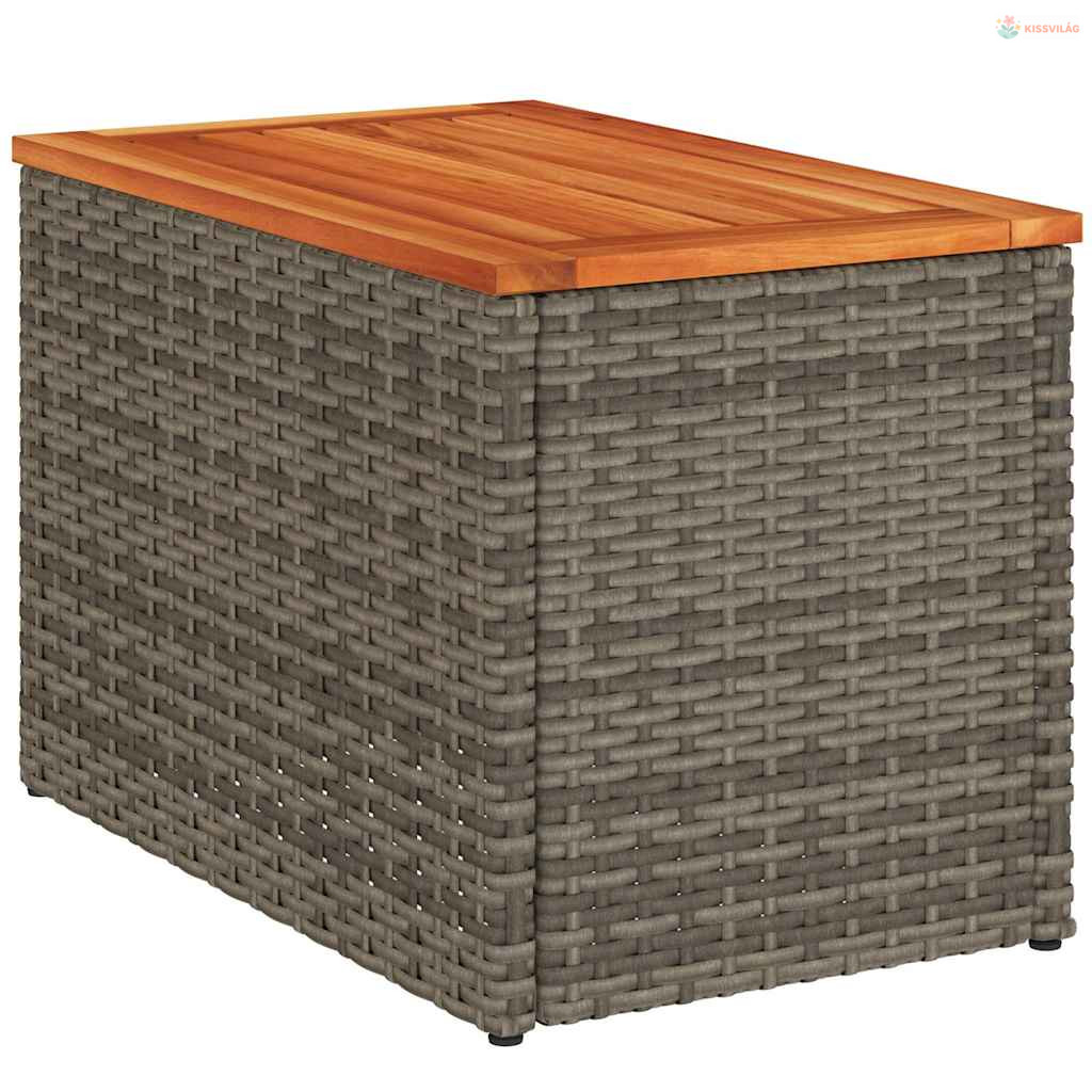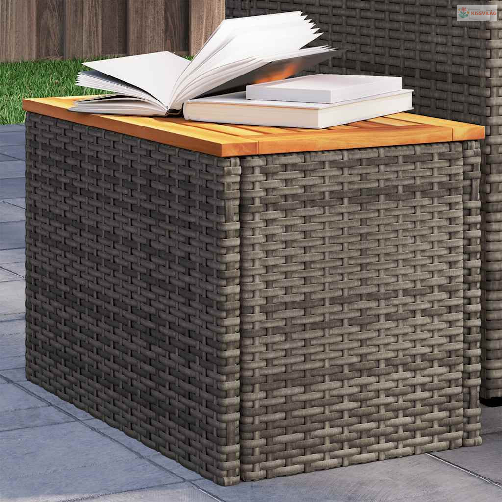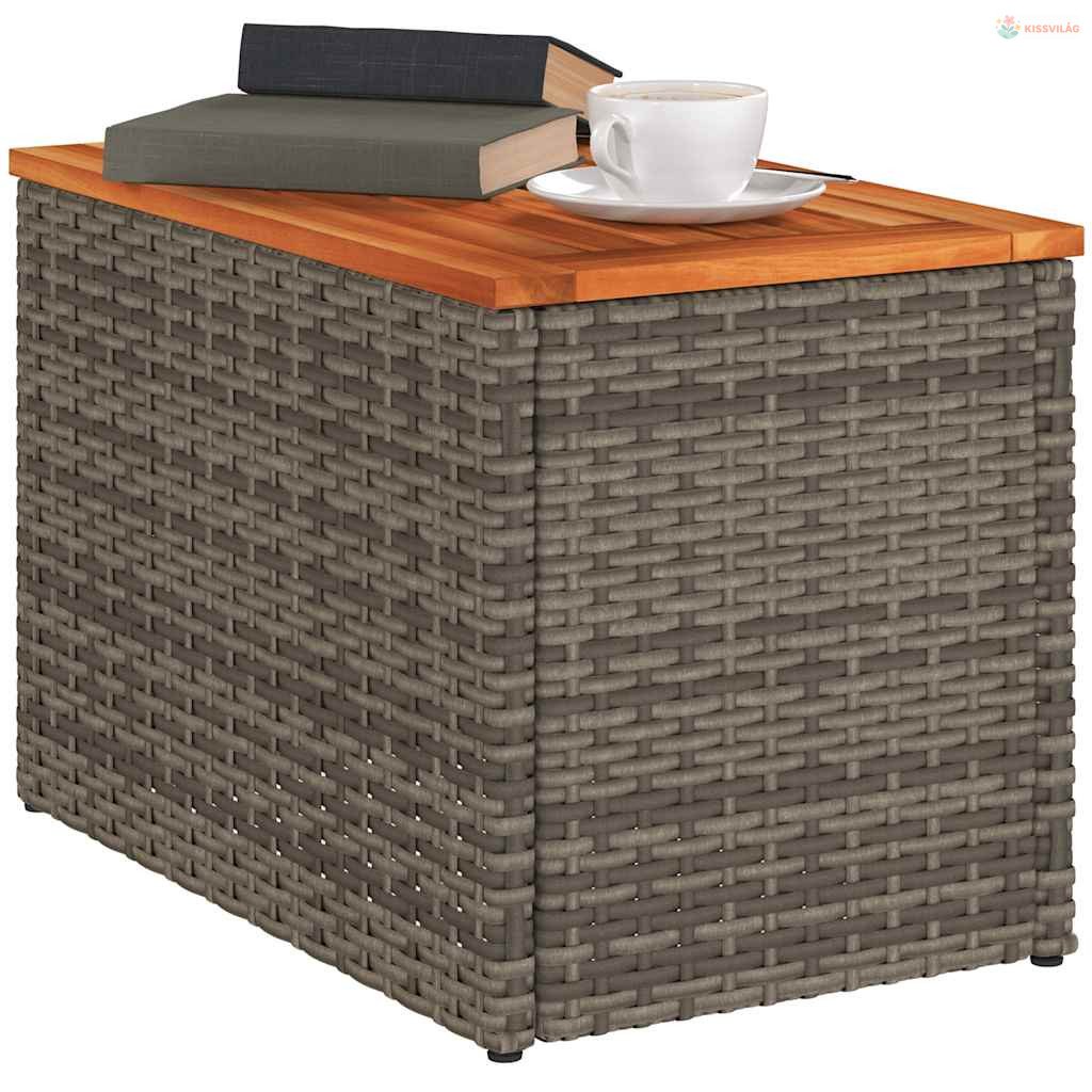 2 db szürke polyrattan és tömör fa kerti kisasztal 55x34x37 cm