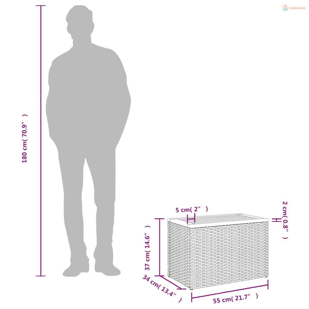 • Mérete: 55 x 34 x 37 cm (Ho x Szé x Ma)