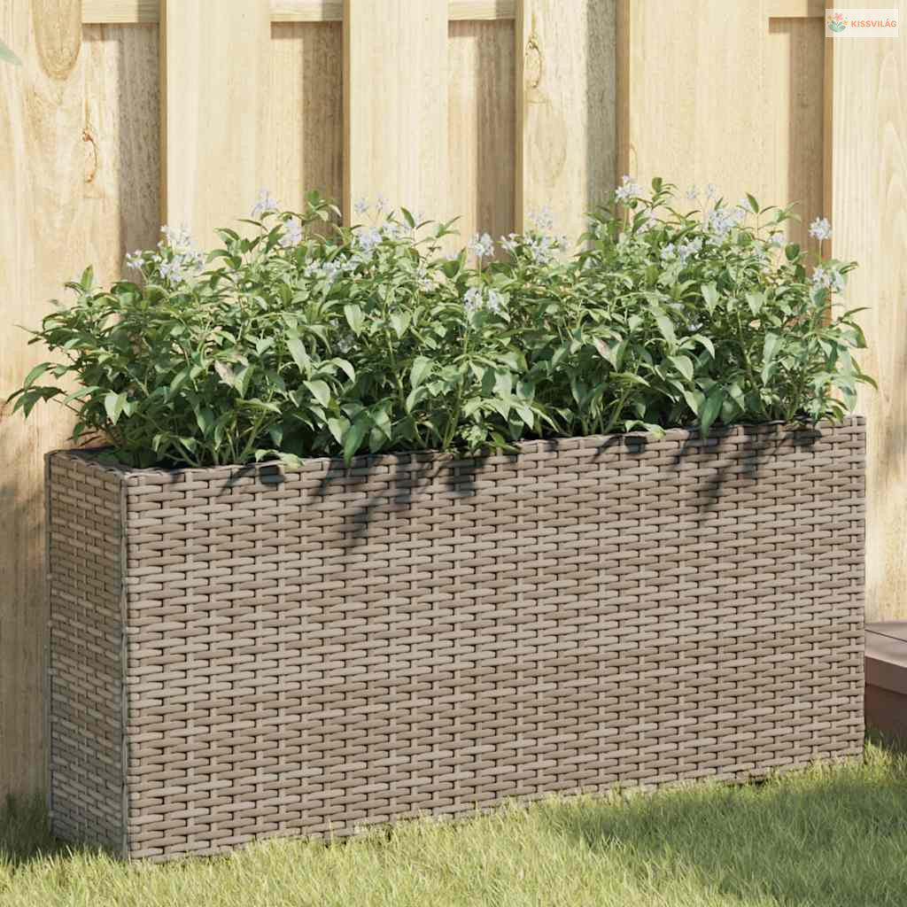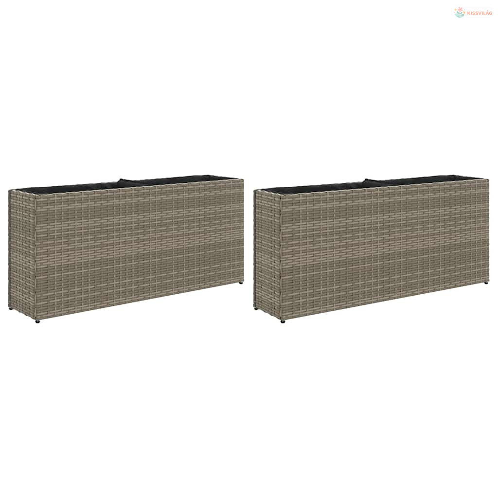 2 db szürke polyrattan kerti ültetőláda 2 cseréppel 90x20x40 cm