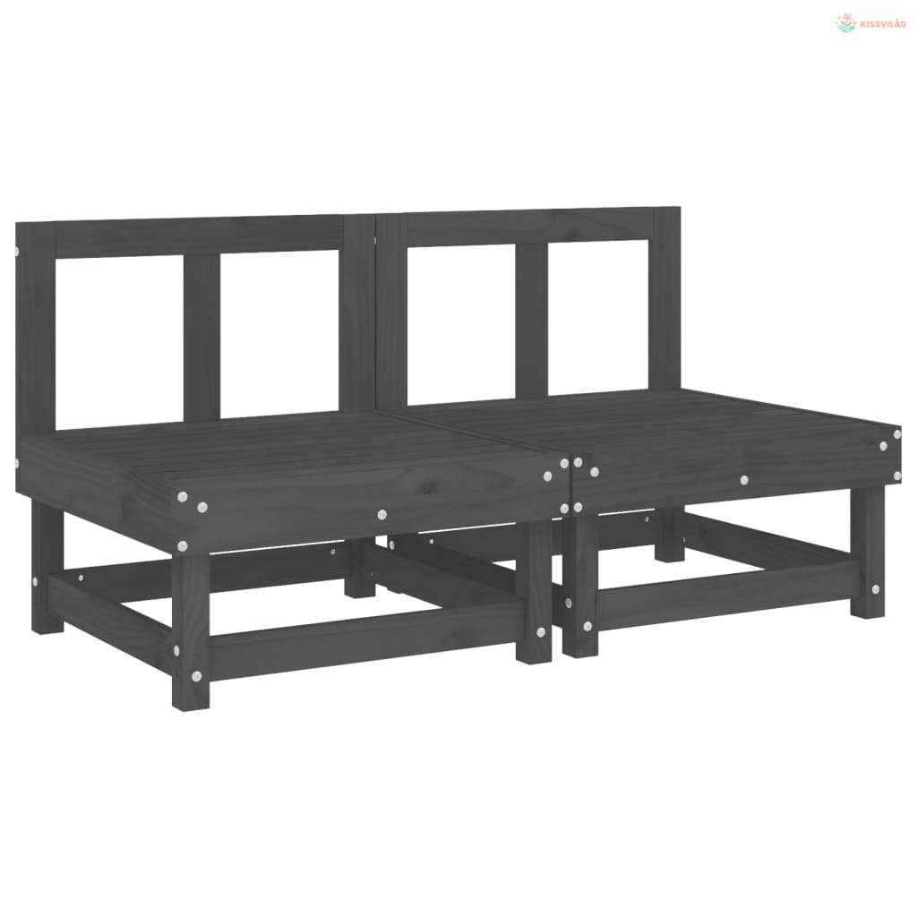 2 db szürke tömör fenyőfa kerti középső kanapé