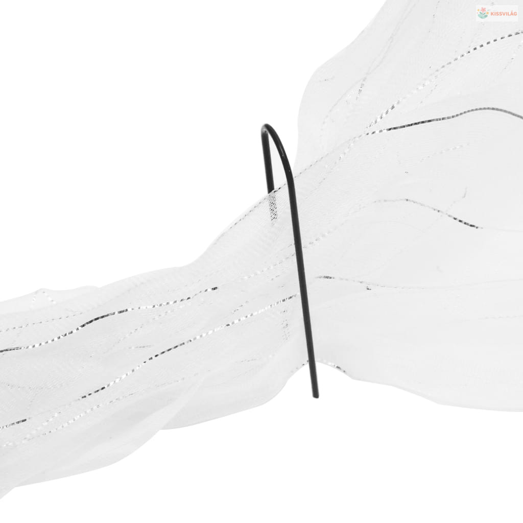 • Könnyen összeszerelhető: Elsősorban 10-15 cm-re helyezze be az ívet a földbe, és hagyja, hogy a háló mindkét végén 50 cm-es lelógás érje a talajt. Másodsorban, vágja le a hálót a kívánt méretre, és terítse a boltívre. Harmadsorban, rögzítse a hálót kerti kapcsokkal, hogy ne károsítsa az erős szél. Végül rögzítse a kerti hálót rögzített szögekkel a széle mentén.