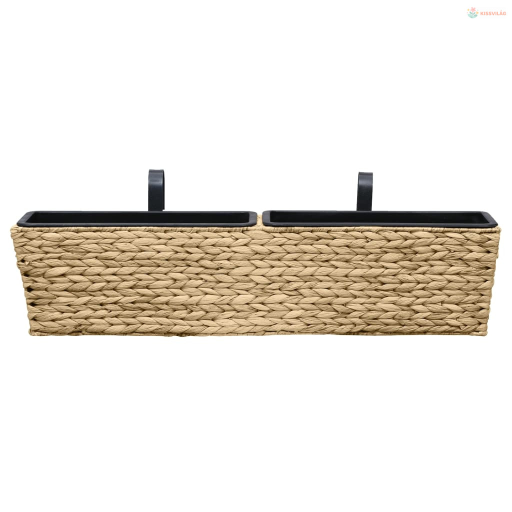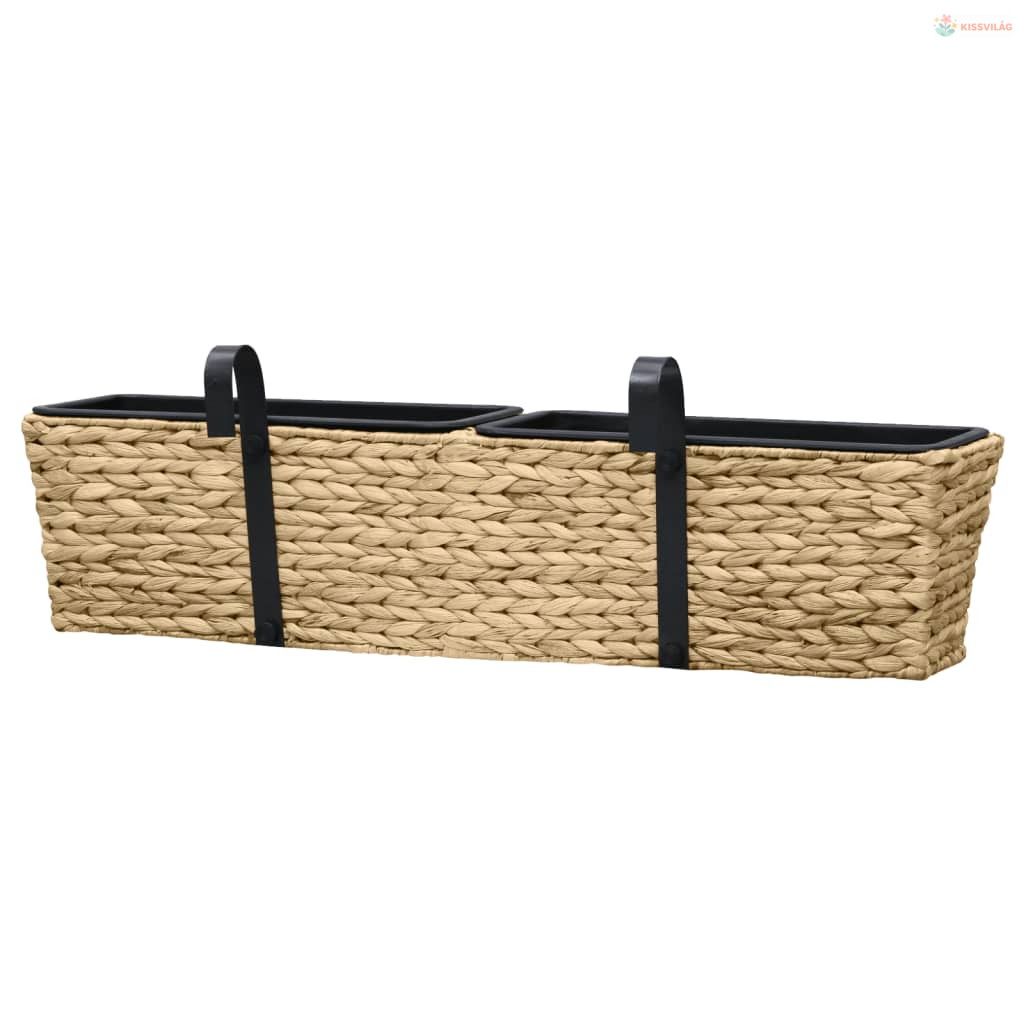 A rendkívül tartós vízijácintból készült virágtartó szorosan fonott kialakítása, és két fém tartója, sima felületet és nagy stabilitást biztosít. Ezenkívül a virágtartóba 2 darab műanyag virágcserép került, így ez az ültetőkészlet hosszú élettartammal rendelkezik. Mindenféle növény és virág ültethető ezekbe a kaspókba.