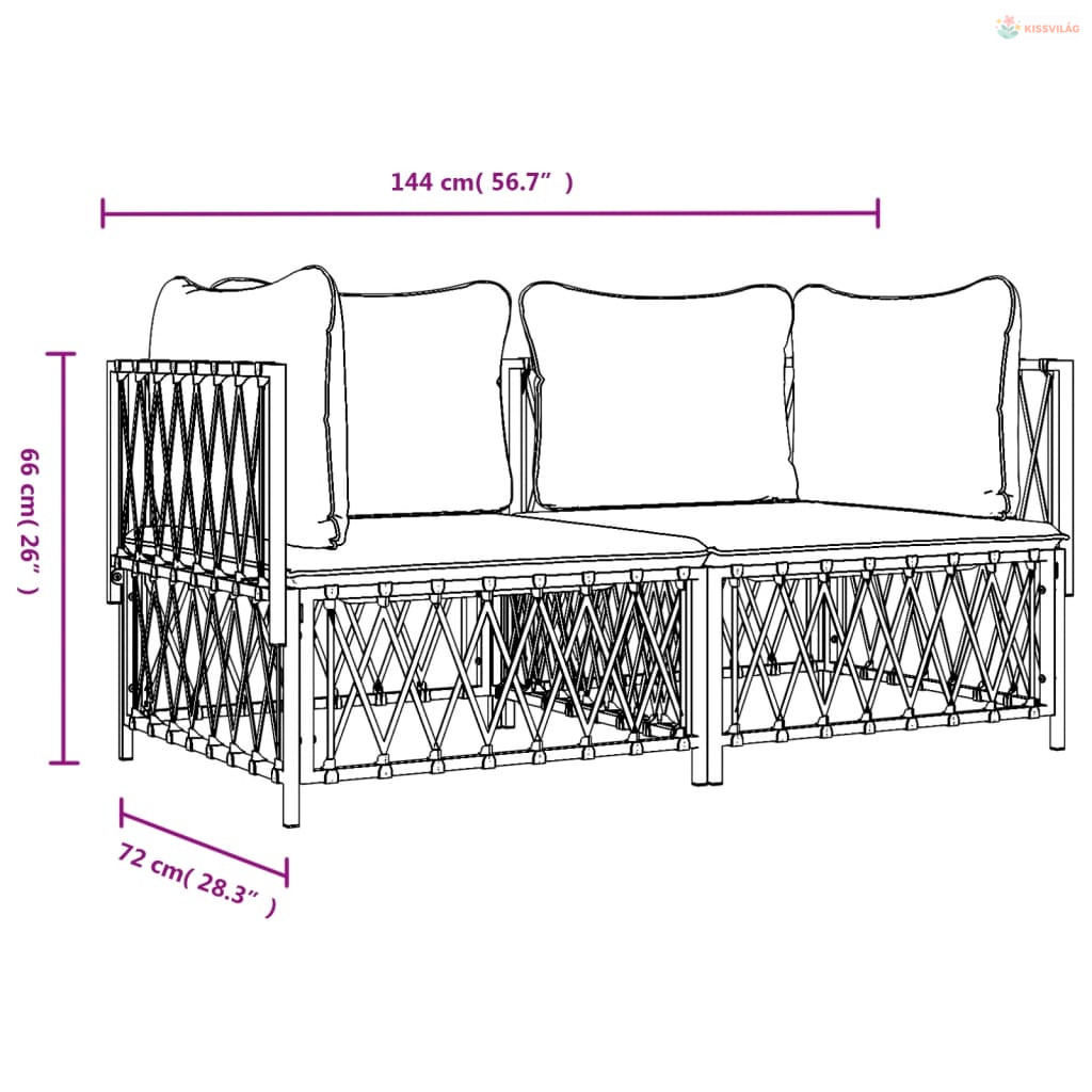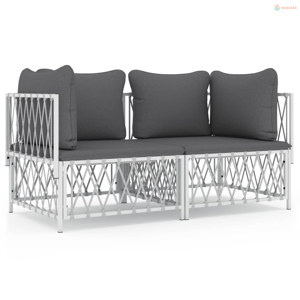2 részes fehér acél kerti ülőgarnitúra párnákkal