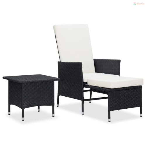 2 részes fekete polyrattan kerti bútorszett párnákkal
