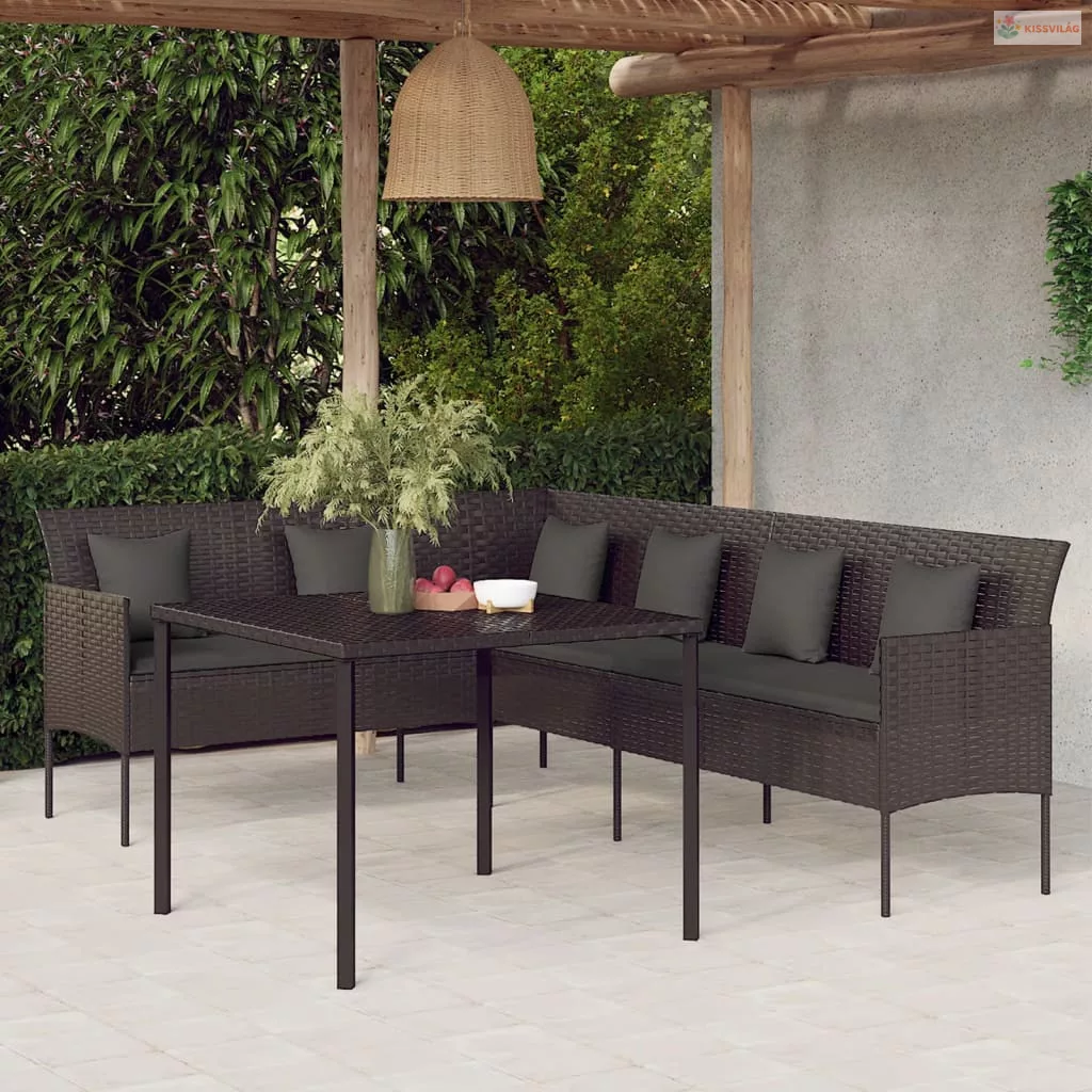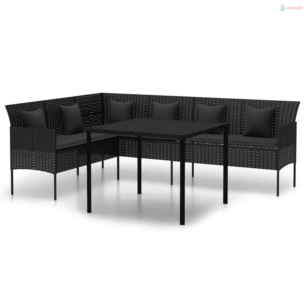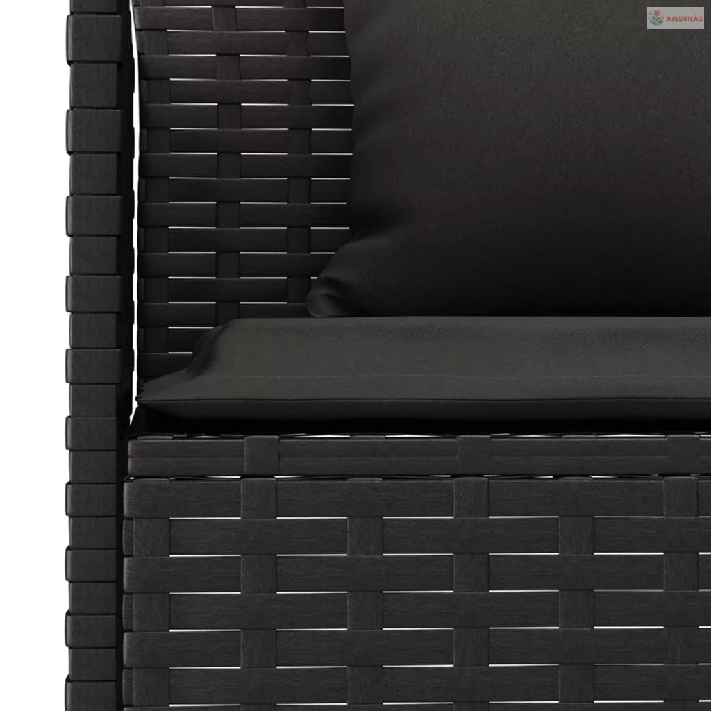 2 részes fekete polyrattan kerti étkezőgarnitúra párnával