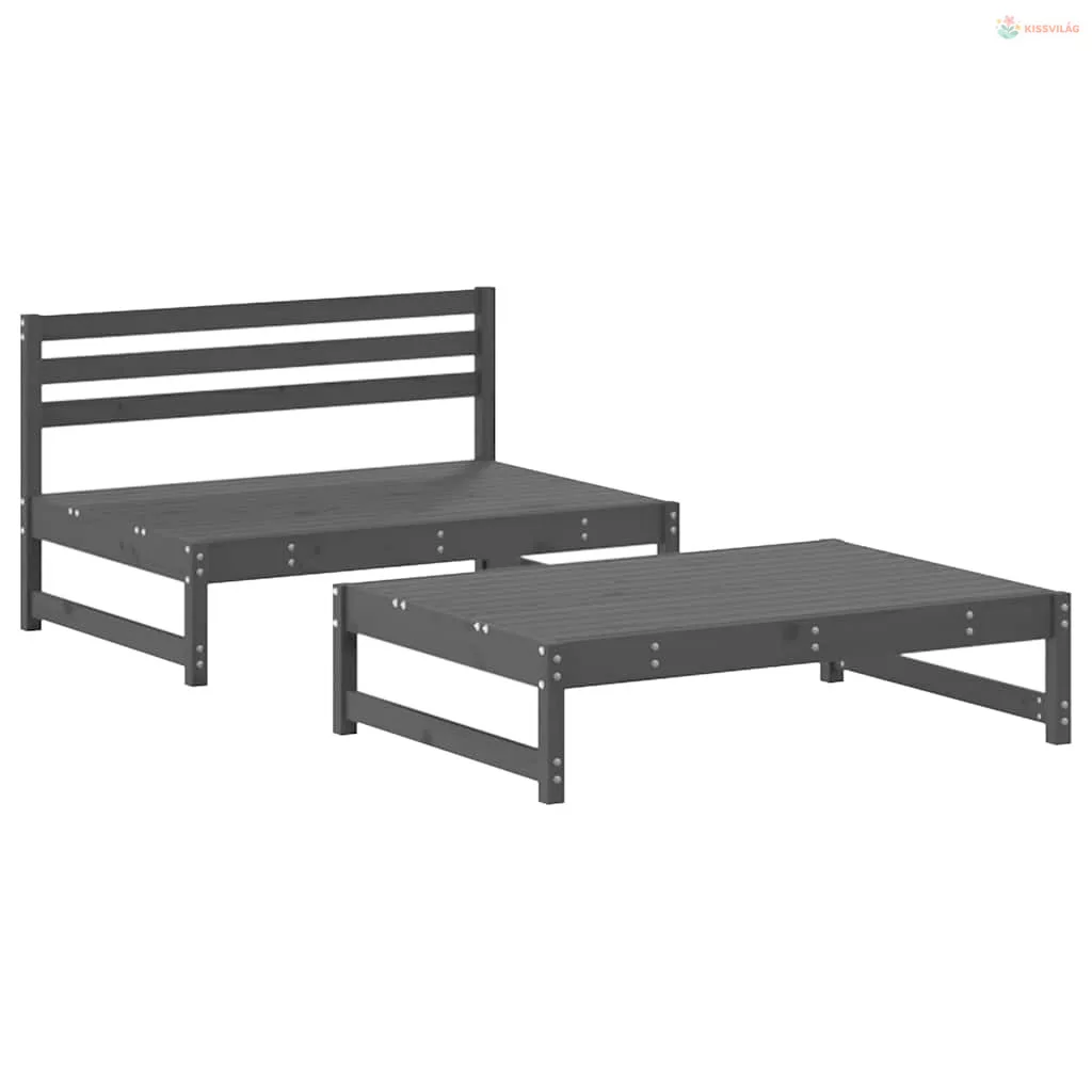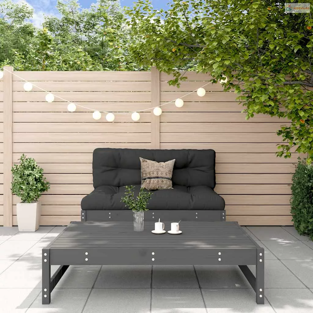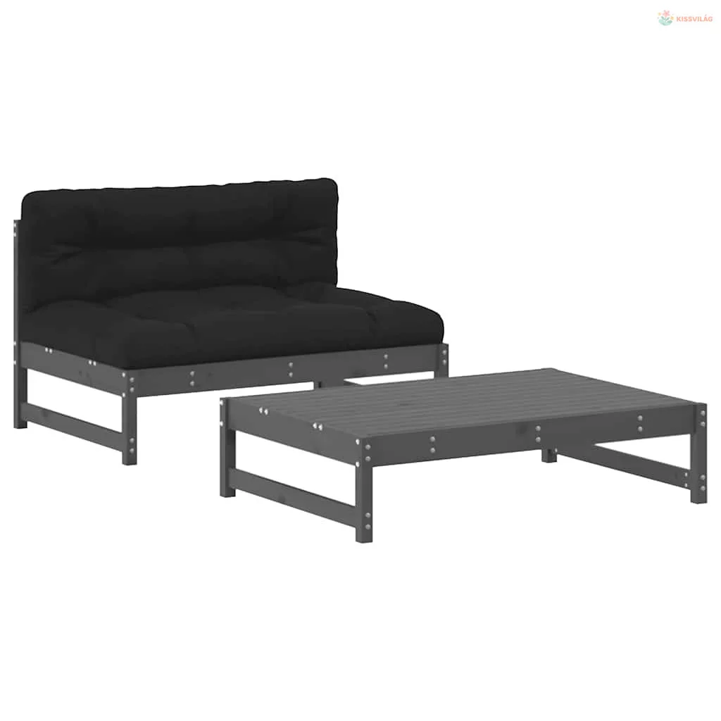 2 részes szürke tömör fa kerti ülőgarnitúra párnákkal