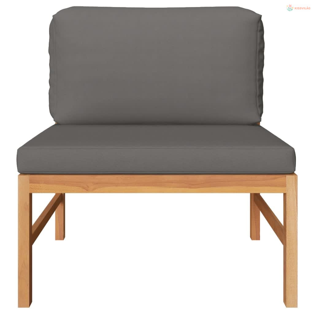 2 részes tíkfa kerti bútorszett sötétszürke párnákkal